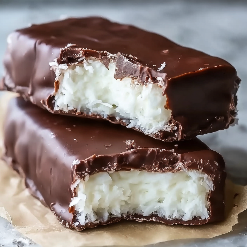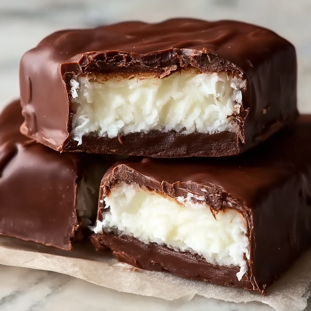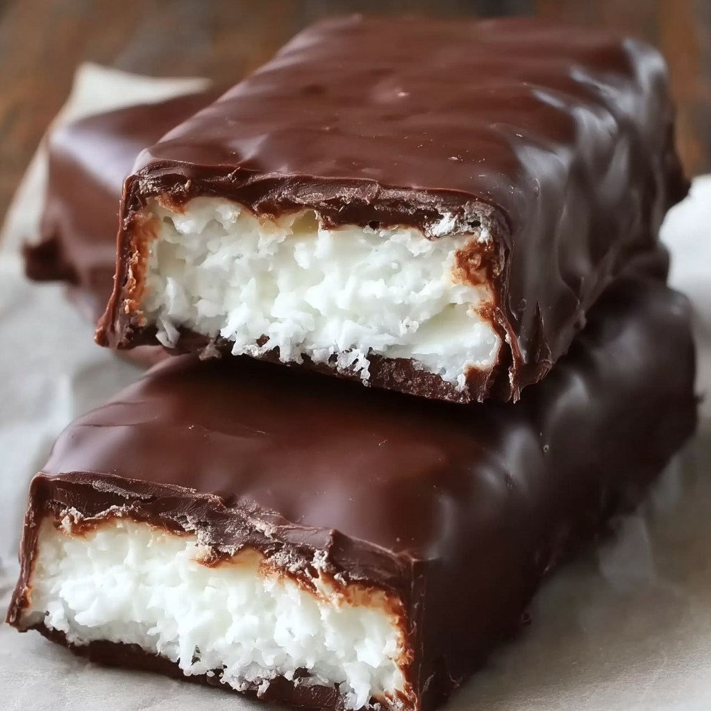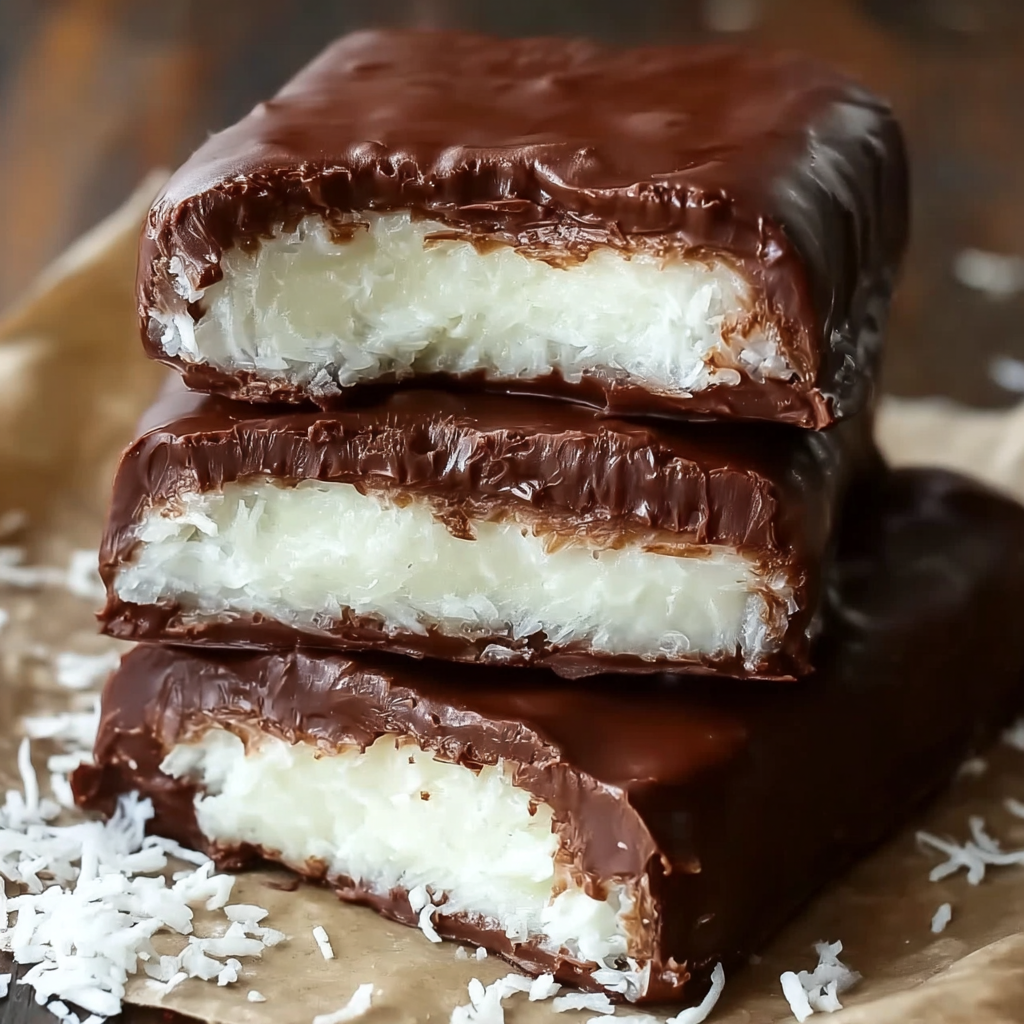Sweetened shredded coconut is the best choice for this recipe because it gives the bars the right chewy, soft texture and sweetness. If you use unsweetened coconut, the bars may turn out drier and less candy-like. The sweetened version also helps create that familiar texture people expect from a coconut-filled chocolate bar.