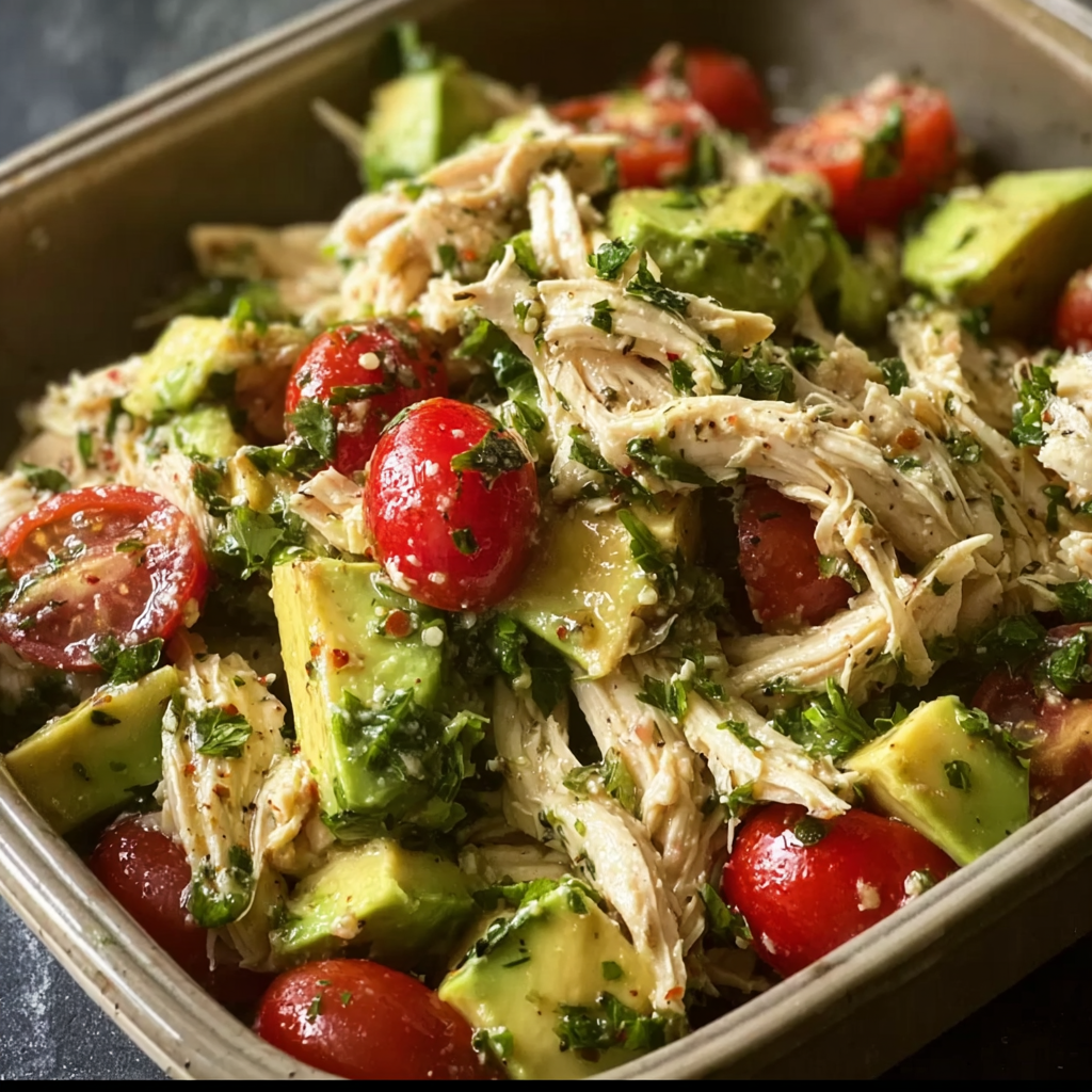 This dish was inspired by the idea of replacing traditional heavy dressings with something fresh and natural. Avocados, with their rich texture and subtle flavor, create the perfect creamy base without needing processed ingredients. Combined with tender chicken and crisp vegetables, this salad brings together simplicity and nutrition in every bite.