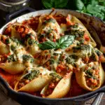What truly sets this dish apart is the creamy tomato sauce. Instead of using a standard marinara, this version introduces heavy cream into the tomato base, resulting in a silky, luxurious sauce that clings beautifully to both the shells and the filling. This approach not only softens the acidity of the tomatoes but also brings a velvety richness that transforms the entire dish.