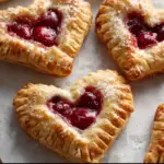 Valentine’s Day Cherry Pies are more than just dessert—they’re an experience. From rolling out the dough to cutting perfect heart shapes, the process itself feels thoughtful and intentional. Baking something by hand for someone you care about adds meaning to the celebration in a way that store-bought treats simply can’t replicate. What makes these heart-shaped hand pies especially wonderful is their balance of flavor and texture. The buttery, flaky crust contrasts beautifully with the sweet-tart cherry filling, creating a classic combination that feels both nostalgic and festive. Their individual size also makes them versatile. You can serve them at a romantic dinner, pack them in lunchboxes as a surprise, or arrange them on a party platter for a Valentine’s gathering. The recipe is approachable enough for beginner bakers yet satisfying for experienced ones who enjoy perfecting pastry techniques. With simple ingredients and straightforward steps, you can create bakery-quality treats right in your own kitchen. Whether you’re celebrating with a partner, friends, family, or simply treating yourself, these cherry hand pies are a heartfelt way to mark the occasion. Every golden, sugar-dusted bite carries a little extra sweetness—exactly what Valentine’s Day is all about. PrintBaked Valentine’s Cherry Pies – Heart Cutout & Sweet Filling