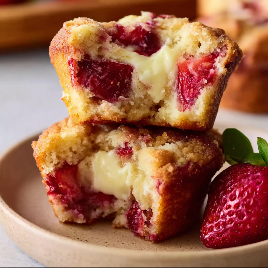 These bakery-style muffins are loaded with sweet strawberries and a creamy cheesecake layer in every bite. Perfectly soft, not too sweet, and always a hit with family and friends.