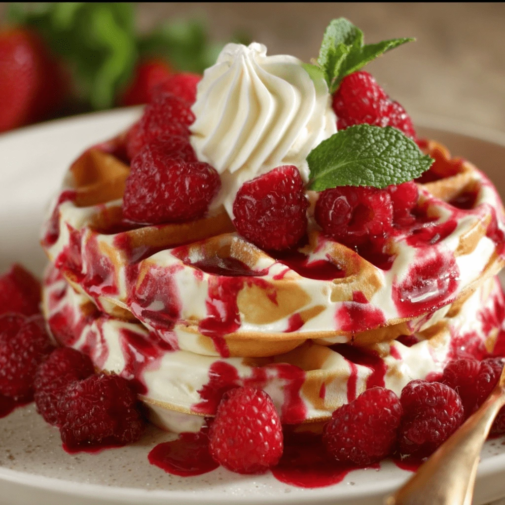 Red Velvet Marble Waffles are a visually stunning and delicious fusion of rich red velvet and classic golden waffle batter. Perfect for brunch, holidays, or any special breakfast, these waffles are soft, crisp on the edges, and beautifully swirled to impress. Serve with whipped cream, berries, or cream cheese glaze for a decadent finish.