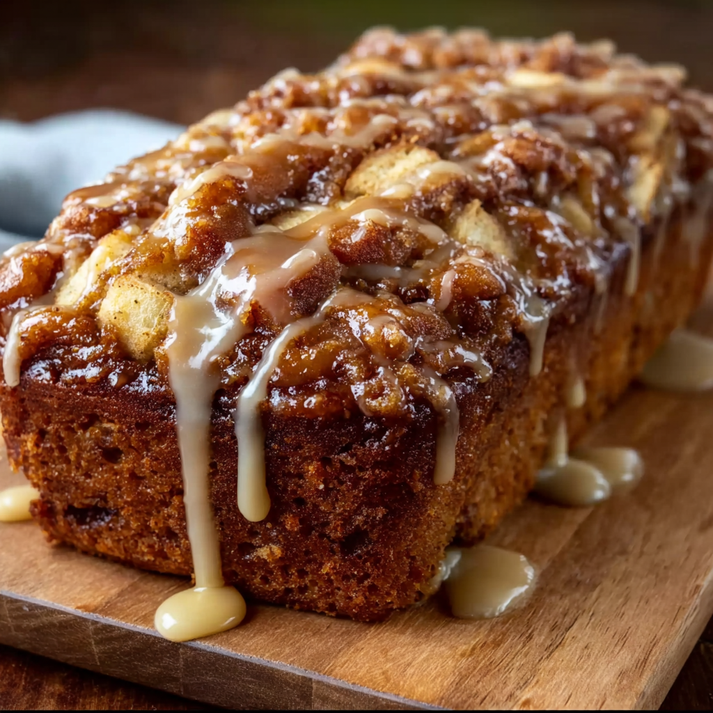 Caramel Apple Fritter Bread is a tender, cinnamon-swirled loaf packed with chunks of fresh apples and layered with a brown sugar crumble. Finished with a rich caramel glaze, this quick bread captures the cozy flavor of apple fritters in every slice — perfect for fall breakfasts, holiday gifting, or sweet snacking any time of year.
