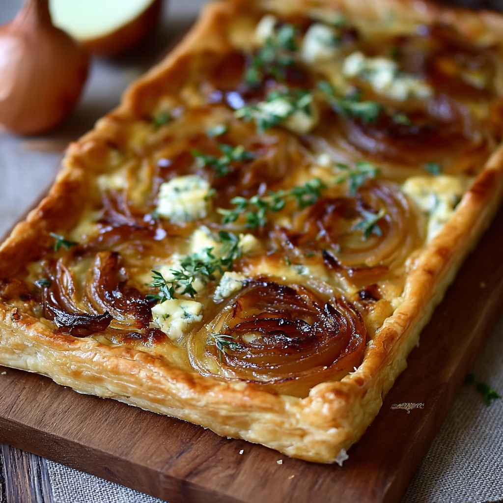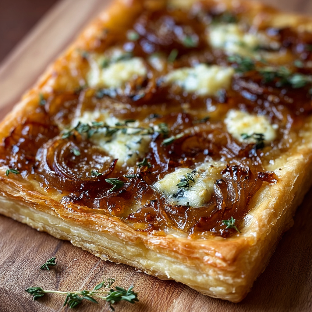 Caramelized Onion and Cheese Tart Flaky Puff Pastry with Gruyere and Thyme
