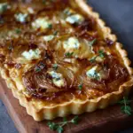 On platforms like Pinterest, this tart shows up in many variations—some with puff pastry, others with shortcrust or even phyllo. The toppings range from goat cheese and thyme to blue cheese and balsamic glaze, proving just how customizable this dish can be.