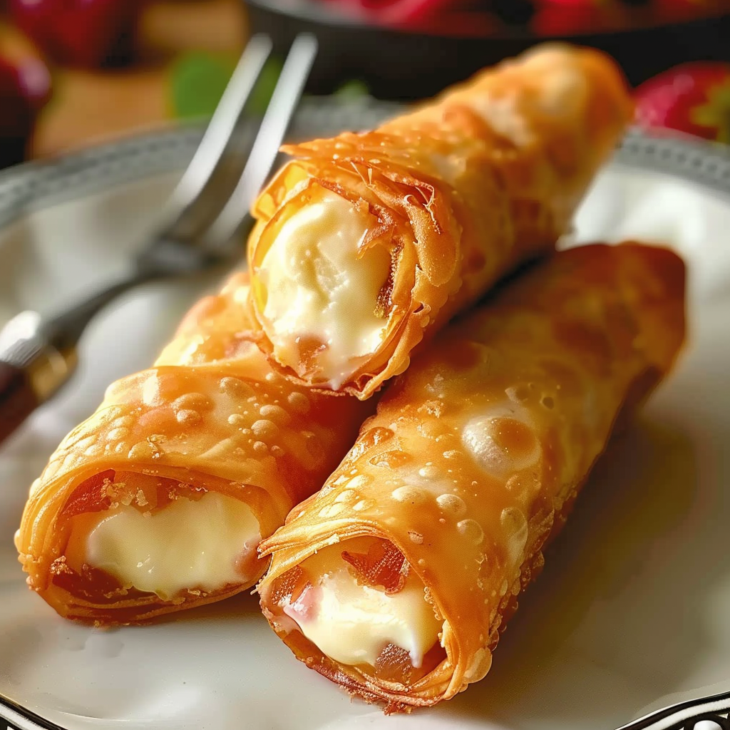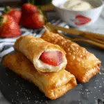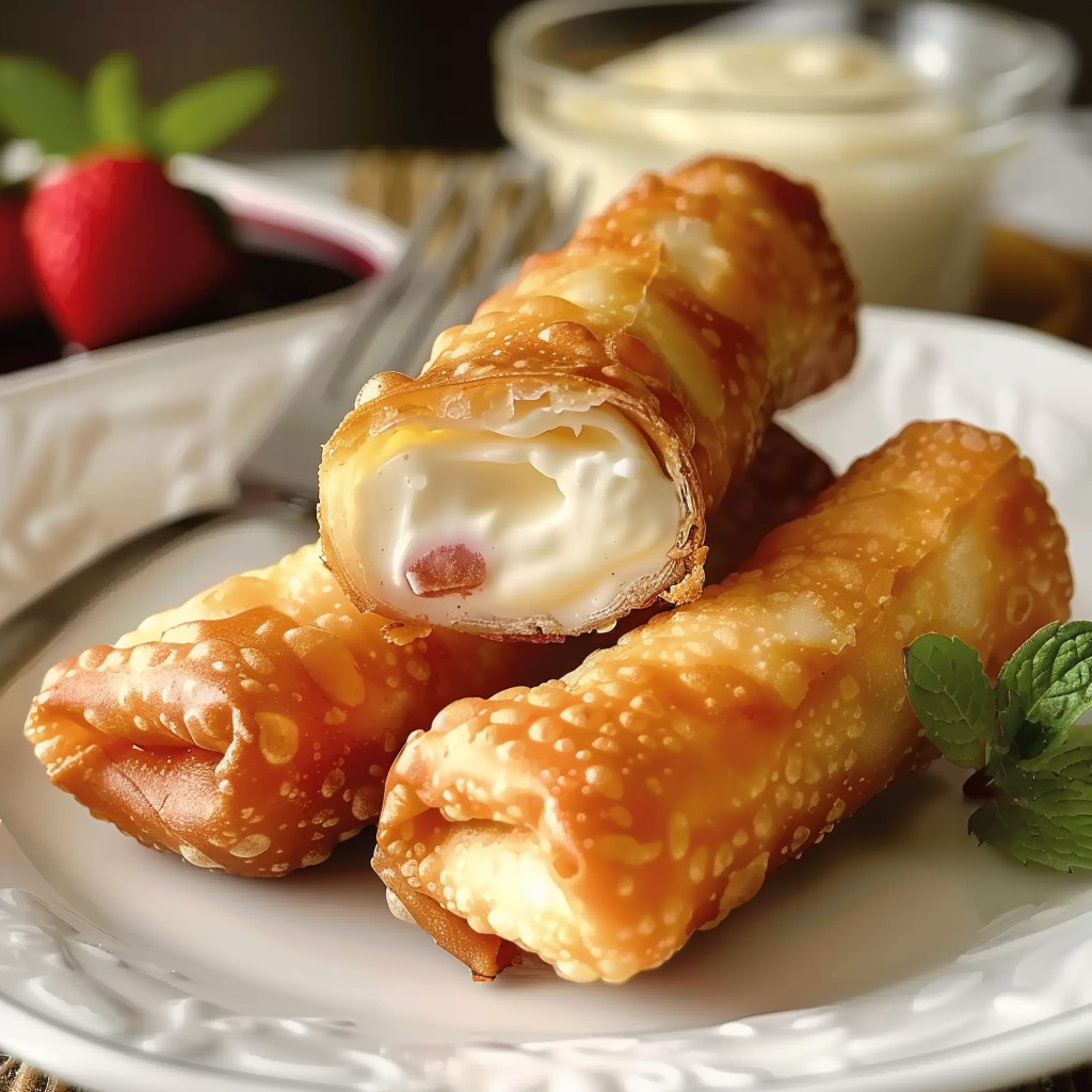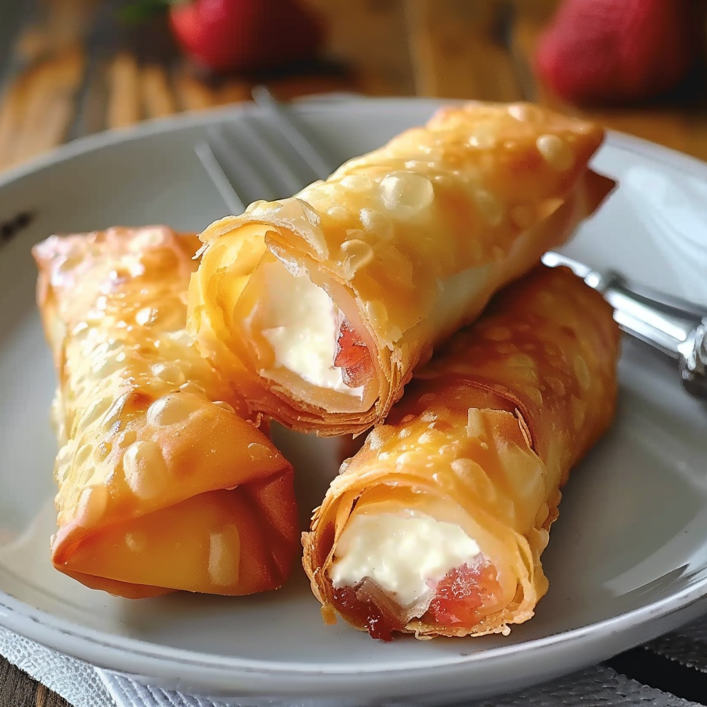 Originally inspired by the fusion of American cheesecake and Asian-style eggrolls, this modern dessert has quickly gained popularity across social media platforms and in home kitchens. Its appeal lies not just in the taste, but in the visual presentation—especially when topped with fresh berries or dipped in strawberry sauce. Whether you’re hosting a party or just satisfying a late-night sweet craving, these eggrolls are the perfect answer.