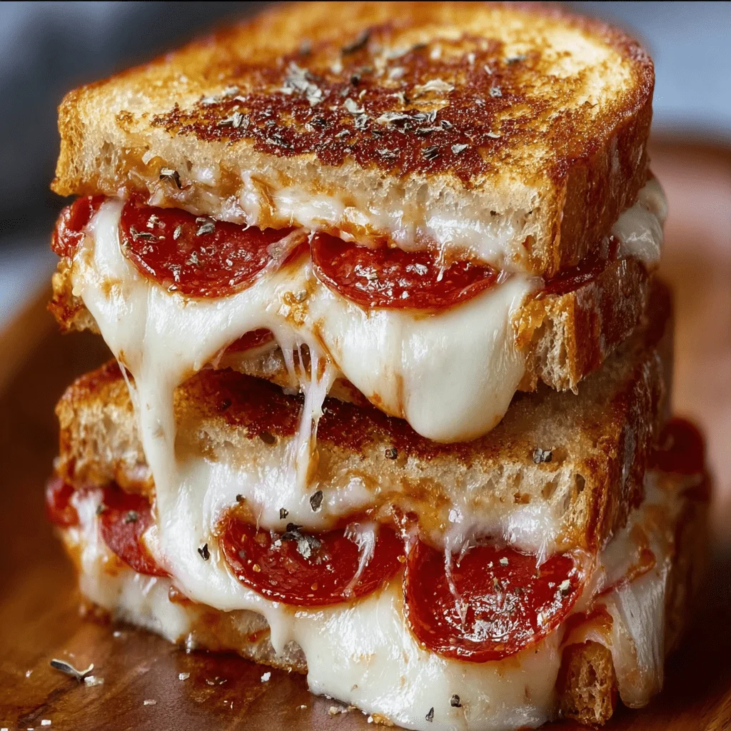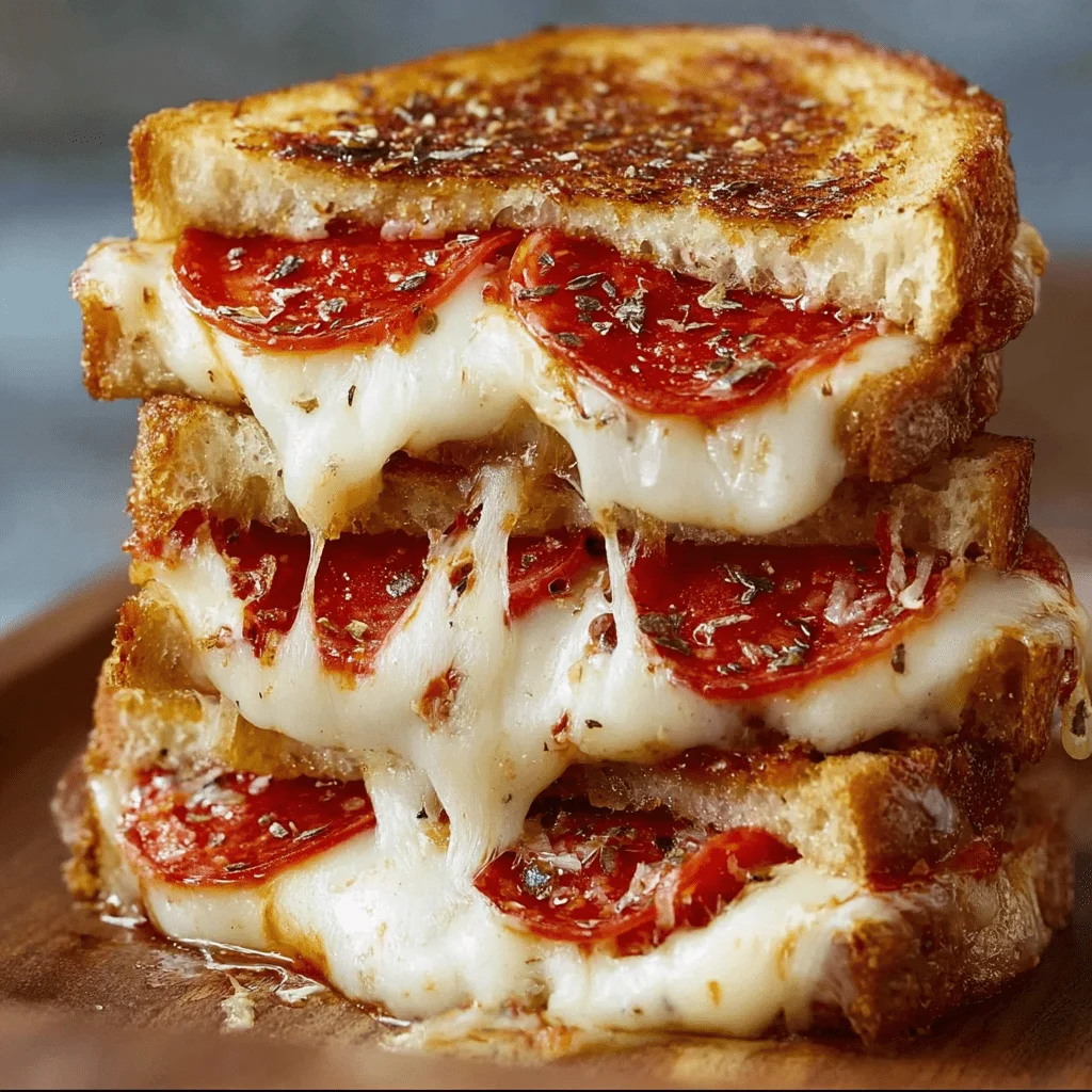 These Pizza Grilled Cheese Sandwiches marry the creamy melt of mozzarella with the smoky crunch of turkey bacon, all nestled between slices of golden, garlic butter-brushed bread. A spoonful of zesty pizza sauce brings vibrant acidity, balancing the rich dairy and savory meat. Perfect for a weeknight feast or a party snack, this sandwich is both comforting and adventurous.