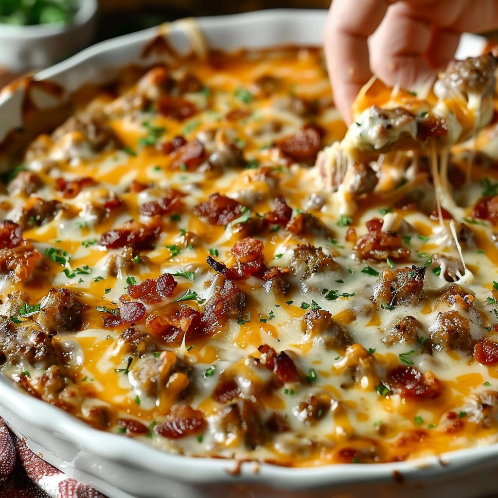 Making this cheesy sausage and bacon baked dip is just as easy as eating it. With simple steps and minimal prep time, it’s a go-to recipe for quick entertaining. Each layer—from browning the meat to blending the cheese—plays a part in building the perfect bubbling, golden-baked dip.