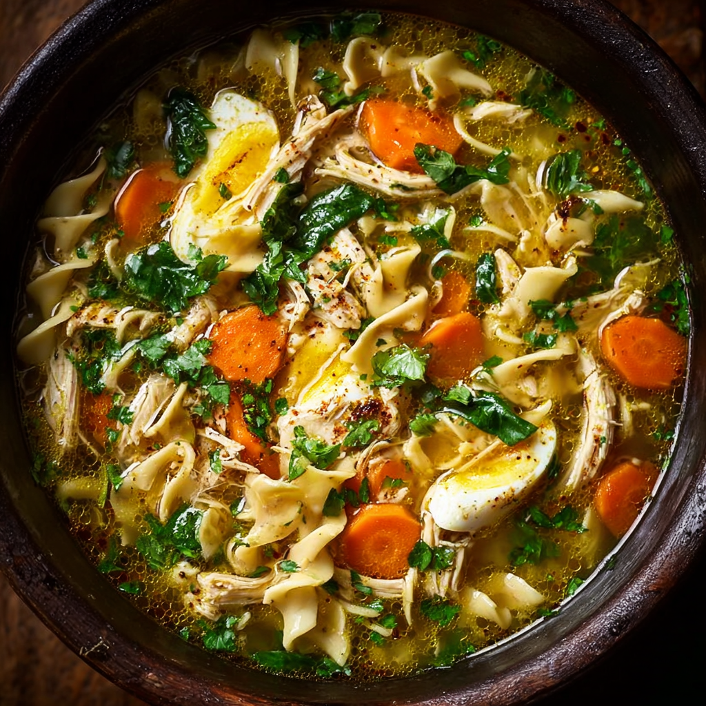 Egg Noodles or Pasta: Egg noodles are traditional in chicken soup, but other shapes like rotini, orzo, or fusilli can be used. Pasta absorbs the broth and creates a heartier texture.