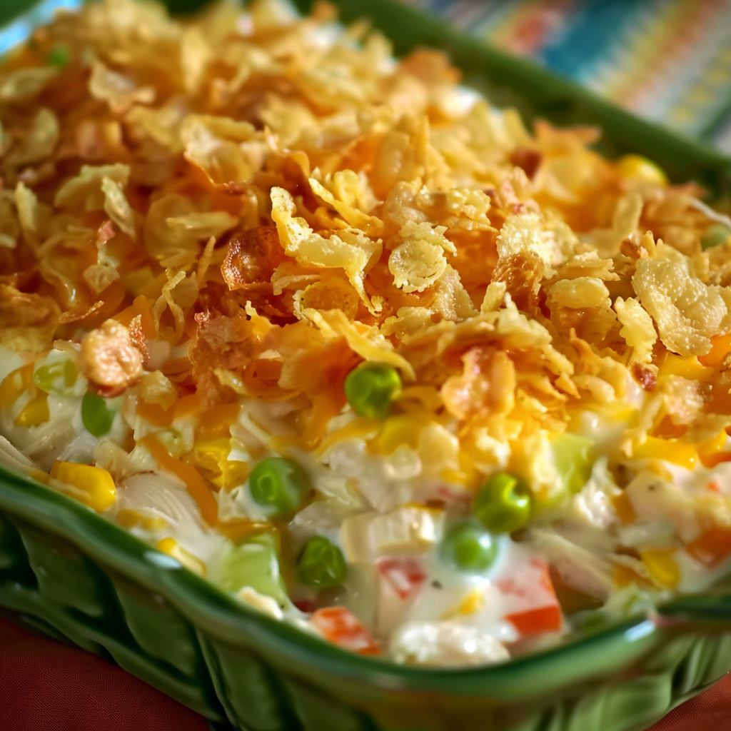 This chicken stuffing casserole combines tender rotisserie chicken, creamy soup, pasta, mixed vegetables, and a buttery cracker topping into a comforting, oven-baked meal. Made with pantry staples and minimal prep, it’s perfect for weeknights, holidays, or freezer-friendly batch cooking.