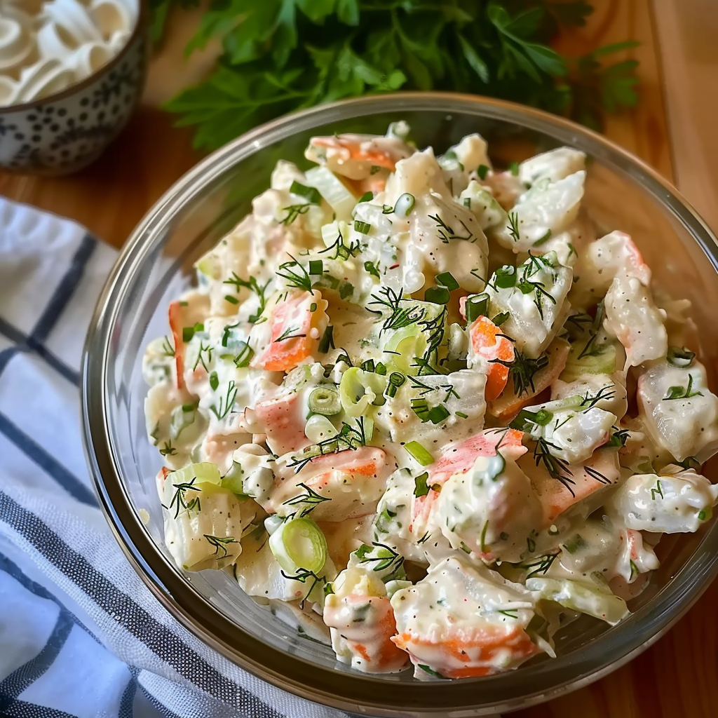 Crab salad—also known as seafood salad—is a creamy, refreshing dish that highlights the sweet, delicate flavor of crab meat, paired with crunchy vegetables and a tangy dressing. Whether made with imitation crab or lump crab meat, this salad is quick to prepare, requires no cooking, and is endlessly versatile.