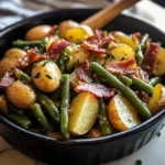 Ranch Green Beans and Potatoes with Bacon is the perfect side dish that’s both hearty and flavorful, with just the right amount of seasoning to make it a standout on your dinner table. The combination of tender potatoes, crisp green beans, and savory bacon, all brought together with ranch seasoning, is simply irresistible. Whether you’re serving it with a weeknight dinner or for a special occasion, it’s sure to please everyone at the table. This dish is versatile, easy to prepare, and customizable to your taste, making it a must-have in your recipe repertoire. Try it once, and it may just become a staple side dish that you’ll make time and time again. Enjoy the comforting flavors and satisfying textures of this delicious meal! PrintCountry-Style Ranch Green Beans & Potatoes with Bacon