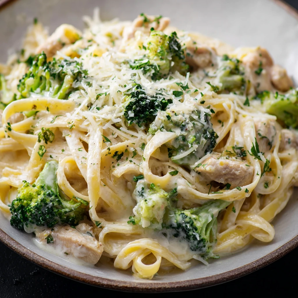 At this point, your kitchen should smell divine, and you’re just about ready to dig in. It’s a beautiful sight—creamy sauce, vibrant green broccoli, and tender chicken all mingling together with pasta.