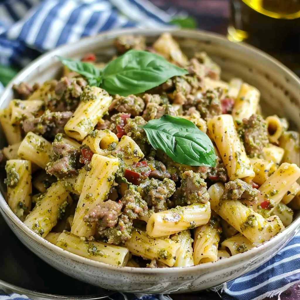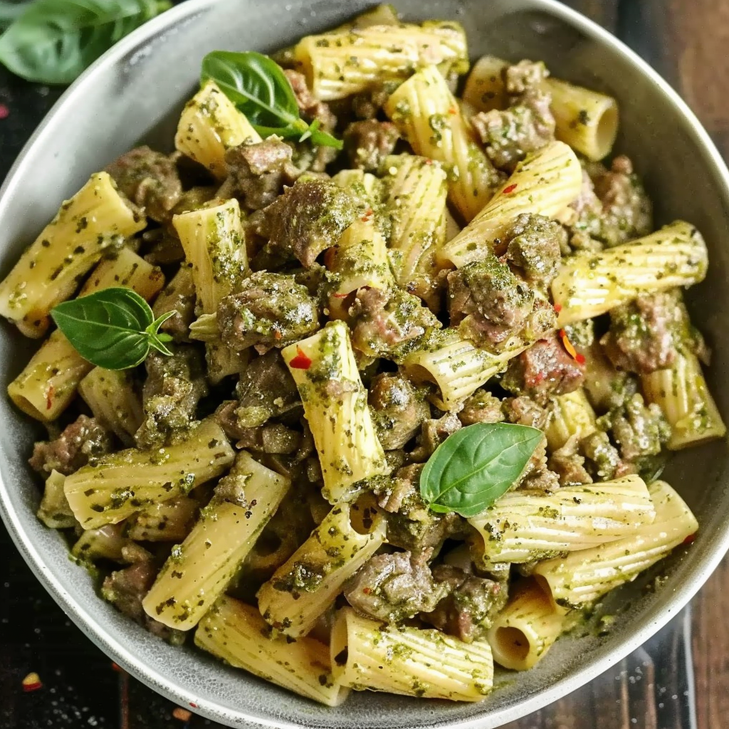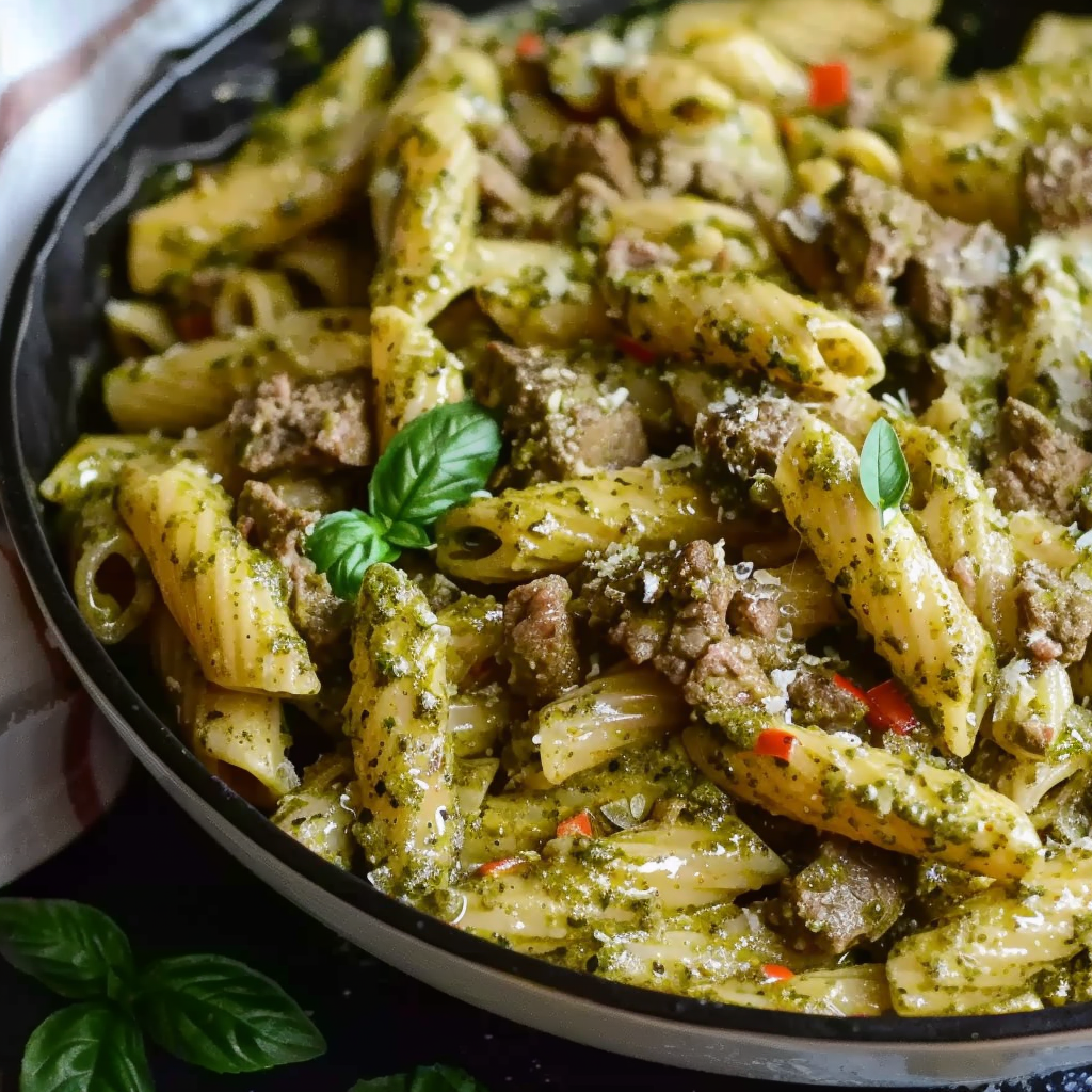 Creamy Pesto Beef Pasta is a quick, hearty, and flavorful weeknight dinner made with tender pasta, rich ground beef, a velvety Parmesan cream sauce, and vibrant basil pesto. Ready in under 30 minutes, it’s comfort food with a fresh, herby twist that’s sure to satisfy.