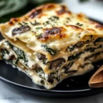 This Creamy Spinach & Mushroom Lasagna is the perfect comfort food for any occasion. With layers of creamy cheese, savory mushrooms, and spinach, all wrapped in perfectly cooked lasagna noodles, it’s a dish that’s sure to satisfy everyone at the table—whether they’re vegetarian or not. The creamy sauce brings everything together, while the cheese adds a satisfying melt that makes every bite indulgent and delicious. Not only is it a crowd-pleaser, but this lasagna is also incredibly versatile. You can make it ahead, freeze it for later, or even switch up the ingredients to suit your dietary preferences. With just a few simple steps, you can enjoy a homemade, comforting lasagna that will feel like a warm hug on a plate. I hope you give this recipe a try and make it your own. Whether you’re cooking for a family dinner or meal prepping for the week, this creamy spinach and mushroom lasagna will be a dish you’ll return to time and time again. Don’t forget to share your thoughts or any variations you tried in the comments below. Enjoy your delicious lasagna! PrintCreamy Spinach & Mushroom Lasagna – A Vegetarian Showstopper