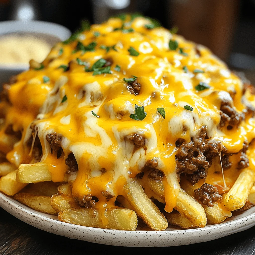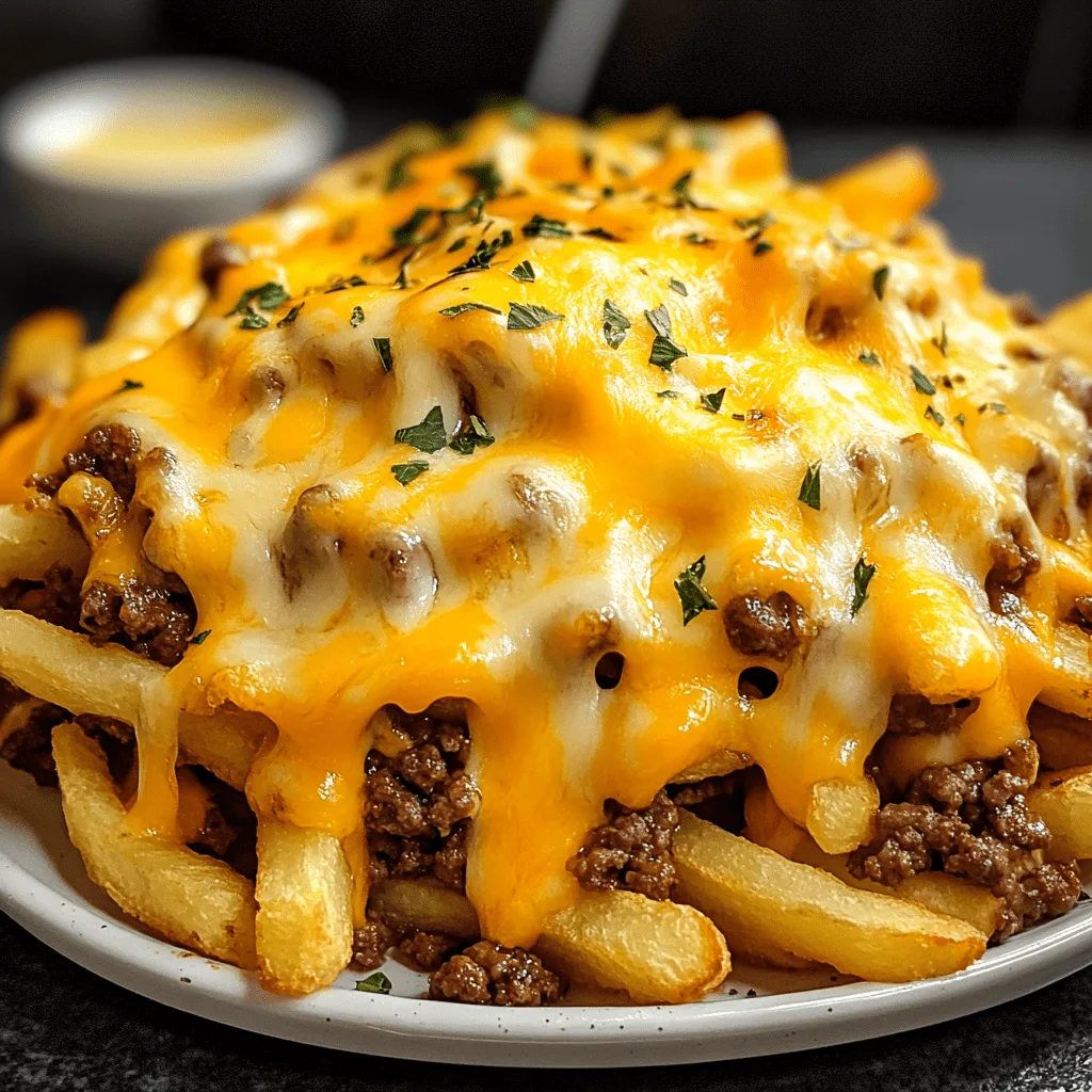Texture Contrast: Fries provide a crispy counterpoint to the creamy beef and cheese.