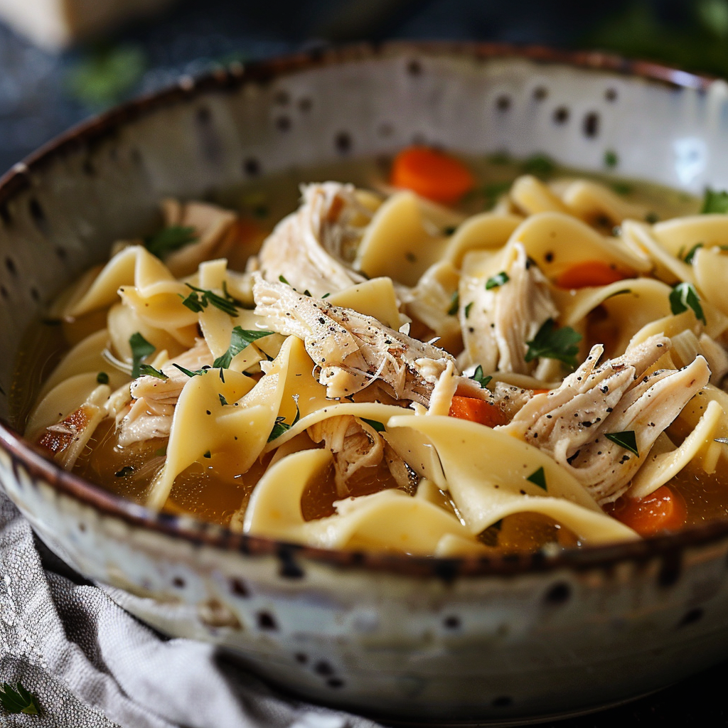 Egg Noodles: Traditional wide egg noodles are the ideal choice. Their tender texture pairs perfectly with the broth. According to Wikipedia, egg noodles differ from regular pasta due to their richer taste and softer consistency when cooked.