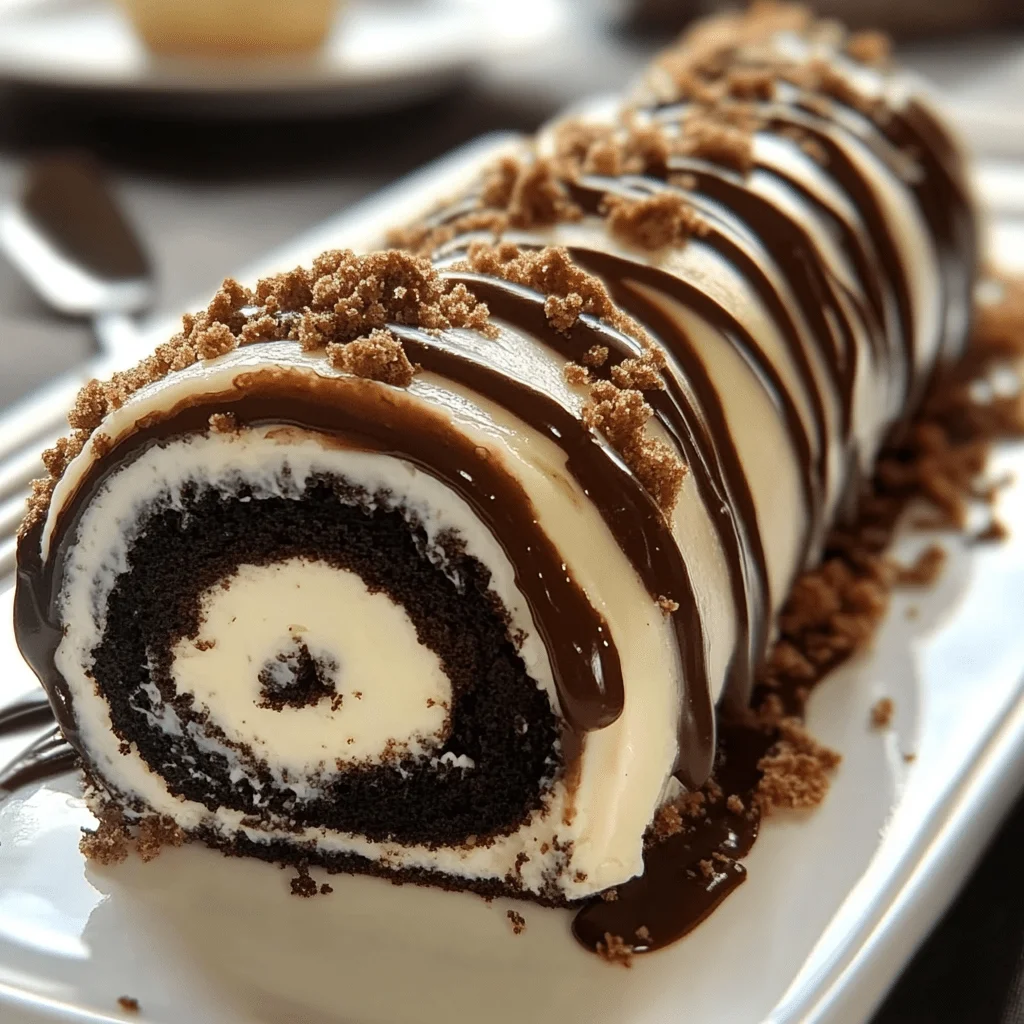 Once that mixture is fluffy, it’s sweetened and flavored with vanilla and gently folded with crushed cookies. These crumbs add bursts of chocolate crunch throughout the roll, giving each slice that classic cookie-and-cream flavor in every bite. Make sure not to overmix after adding the cookies, as preserving their texture is key to the contrast.
