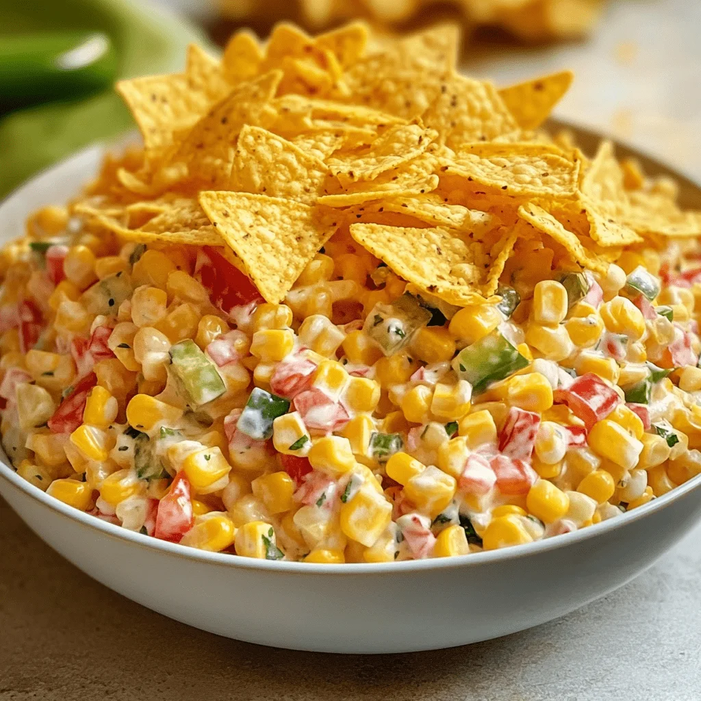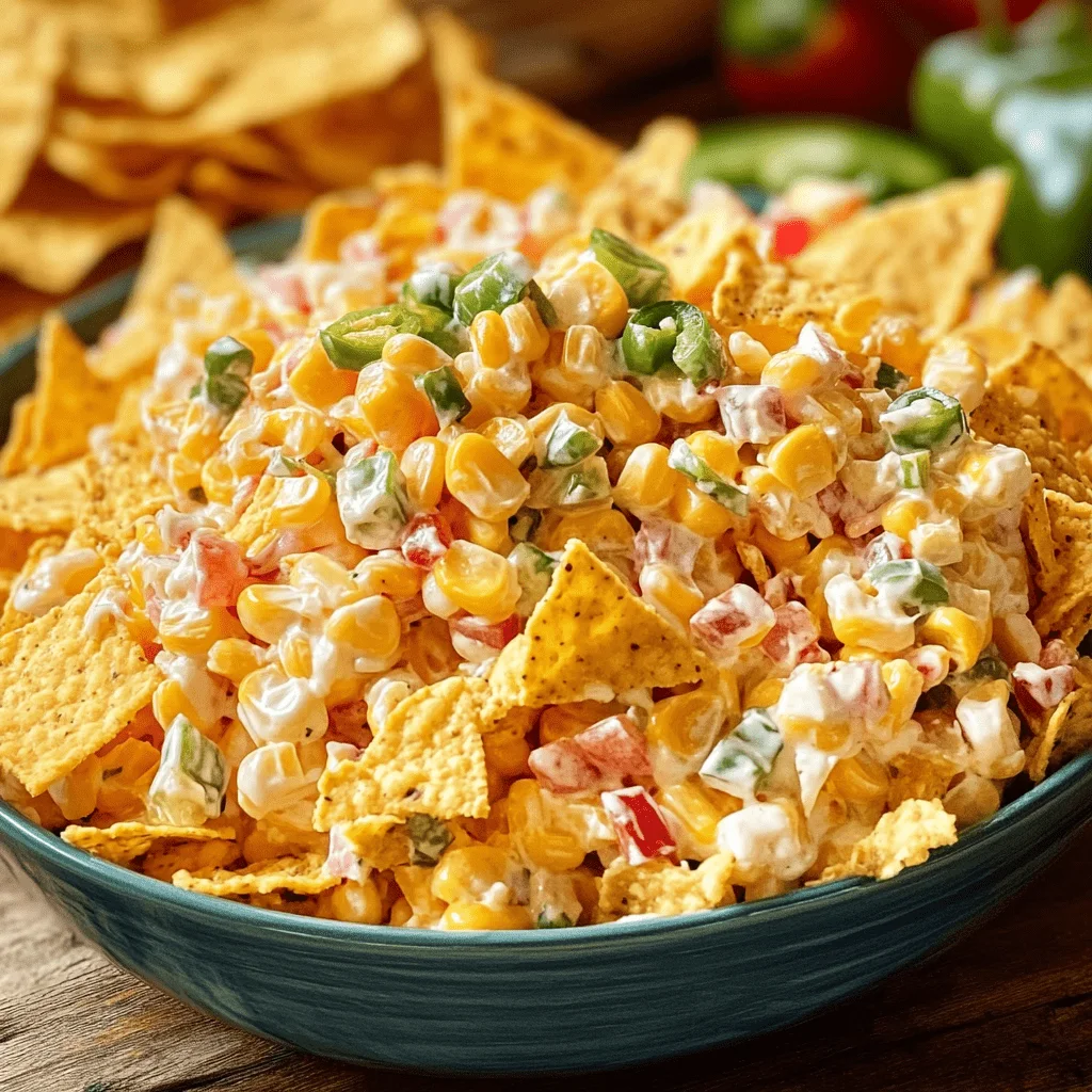 Its origins trace back to retro Americana gatherings, where salty snack foods began to merge with traditional salad staples. Today, it remains a beloved party option due to its simplicity, bold textures, and ability to be tweaked for nearly any occasion or taste preference. You can find similar recipes inspired by Mexican street corn or other Tex-Mex flavors, making it highly versatile.