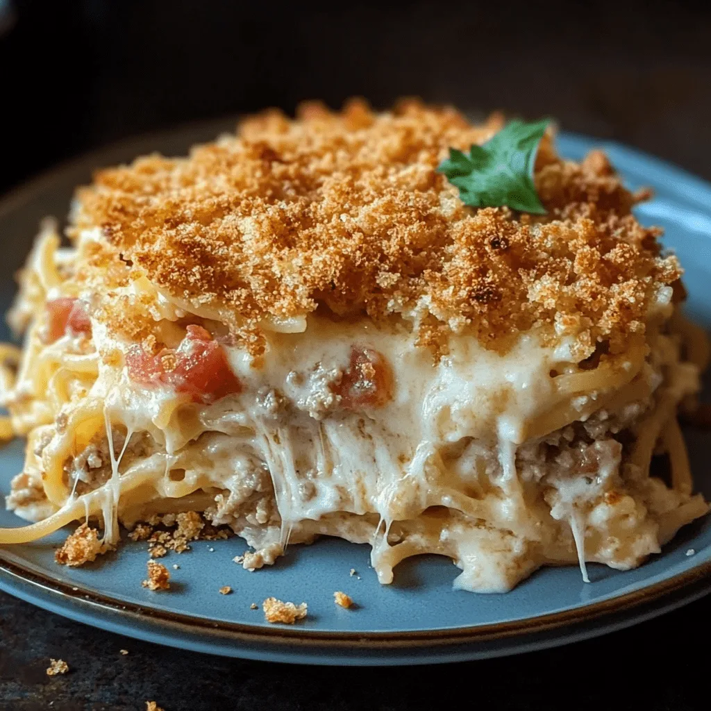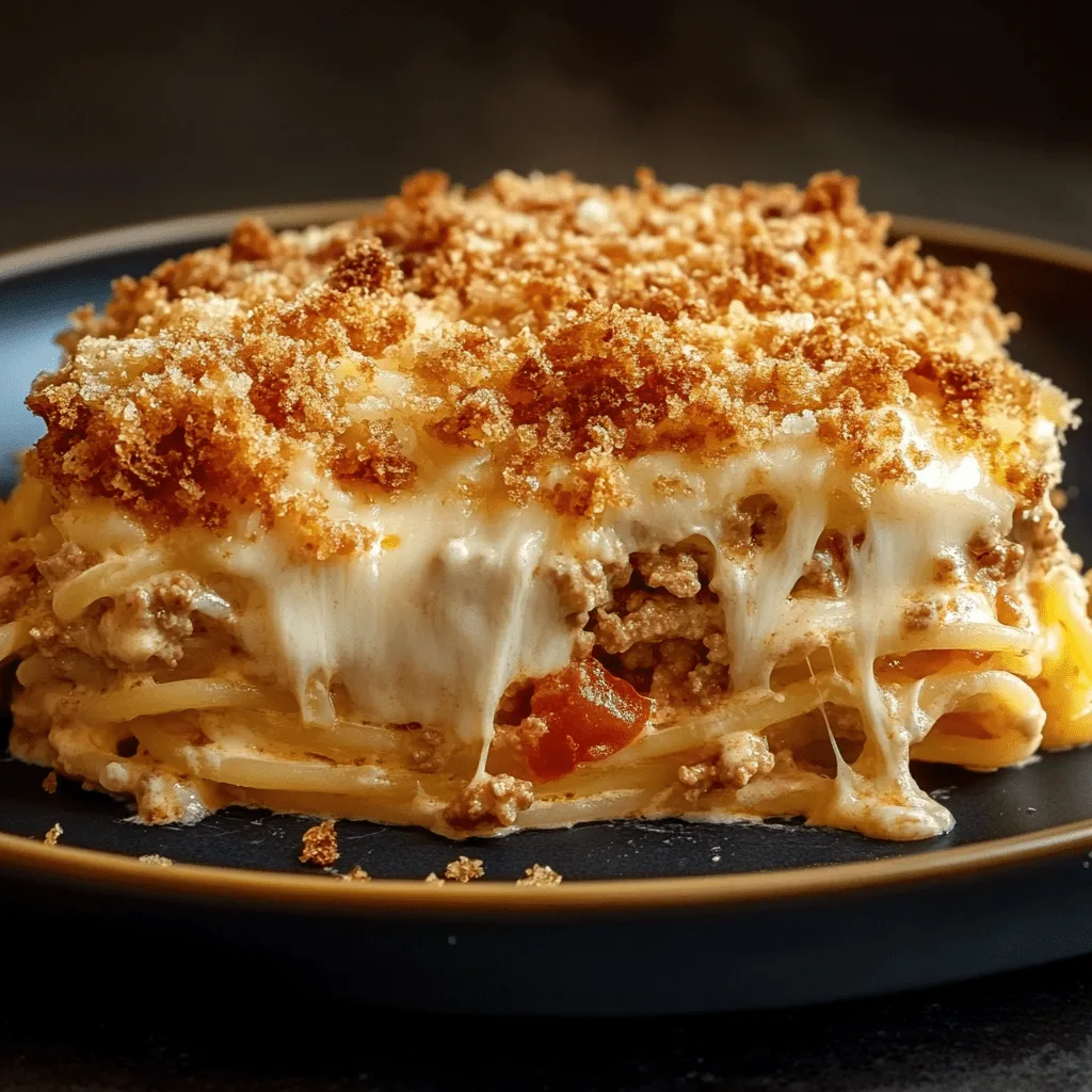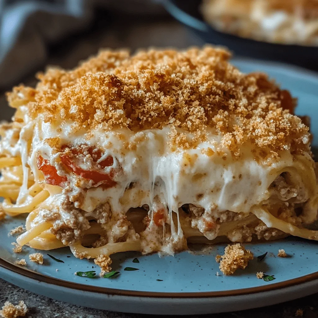 At the heart of this recipe is spaghetti, a classic pasta that perfectly holds sauce and flavor. When mixed with softened cream cheese, it transforms into a silky, decadent layer. Combined with a savory meat layer—commonly ground turkey or plant-based alternatives—it brings out a rich and hearty texture.