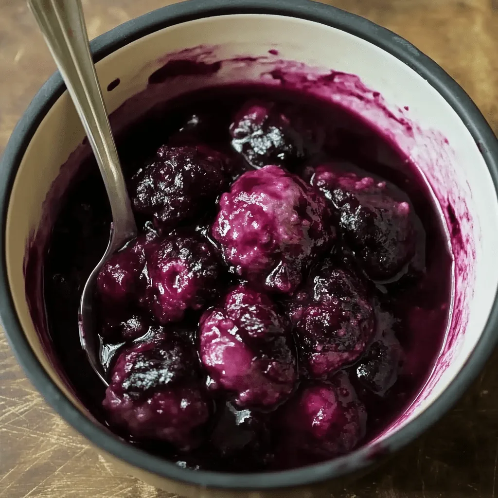 Stovetop dumplings are cooked directly in a simmering blackberry syrup. The dumplings steam in the bubbling fruit mixture, becoming fluffy and infused with berry goodness. This traditional style is soft, spoonable, and rich in flavor.