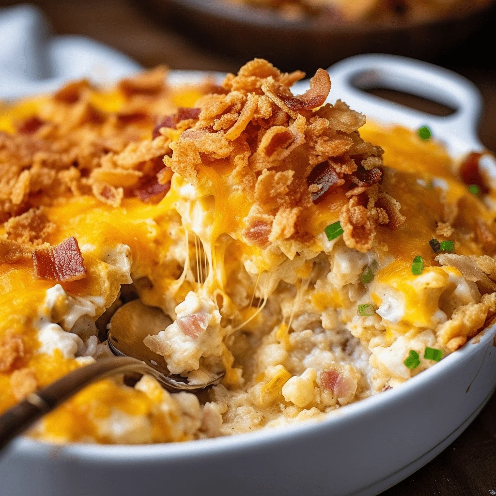 When done right, this casserole is a feast for the eyes and the appetite. The cheese should be fully melted and slightly golden on top, while the edges should bubble with creamy richness. The crunchy topping should appear crisp and toasted without burning.
