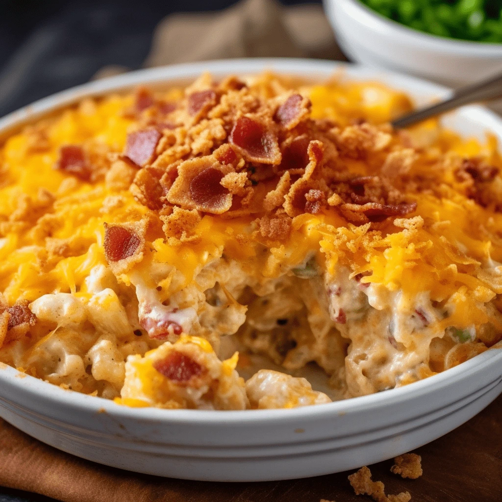 What makes this dish stand out? It blends the tangy punch of ranch seasoning with the richness of melted cheese and the savory bite of crispy turkey bacon. Add a golden crushed chip topping for crunch, and you’ve got a hearty dinner that satisfies all ages. Whether you’re craving something warm after a long day or need a dish that travels well, this casserole has you covered.