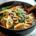 This soup brings together the rich umami flavors of mushrooms, soy sauce, and sesame oil with the hearty bite of frozen potstickers. Plus, the addition of bok choy adds a fresh and slightly crisp contrast, making every spoonful absolutely delicious. If you love dumplings, this is a must-try recipe that turns them into a warm, brothy, and deeply satisfying meal.