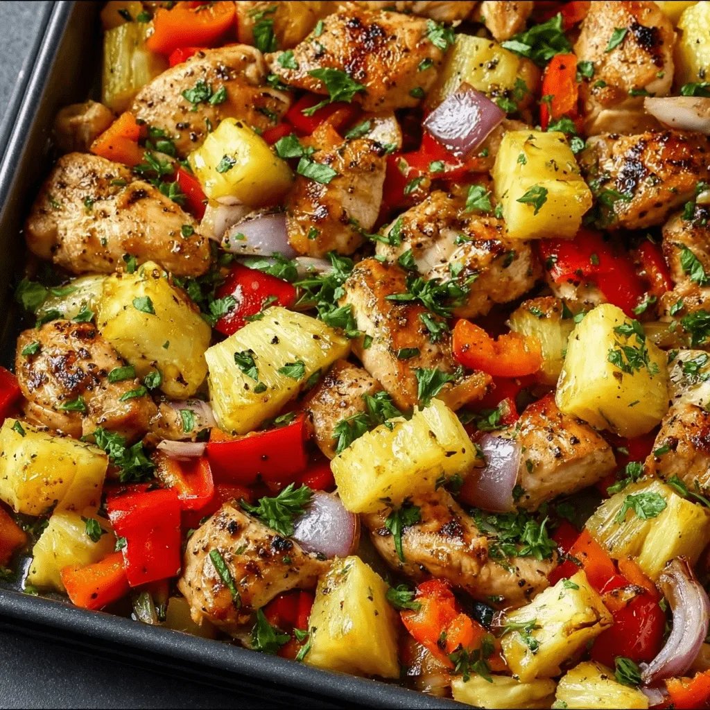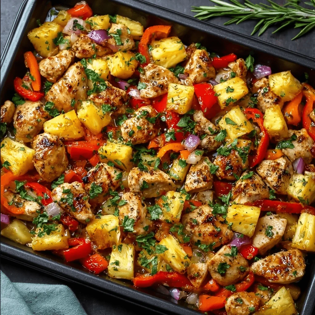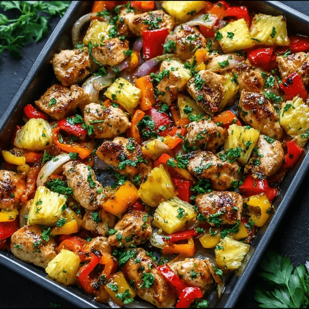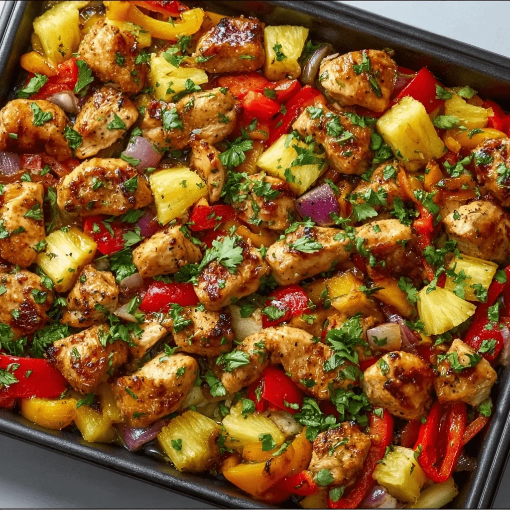 This Hawaiian Chicken Sheet Pan Dinner is a quick, vibrant, and healthy one-pan meal that brings the flavors of the islands right to your kitchen. Made with juicy chicken breasts, pineapple chunks, colorful bell peppers, and a sweet-savory glaze, this dish is oven-roasted to perfection. Perfect for family dinners, meal prep, or weeknight meals when you want something bold, fresh, and easy to clean up.