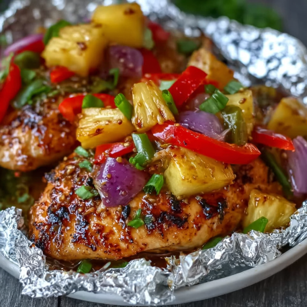 Enjoy the sweet and savory harmony of this teriyaki chicken and pineapple foil packet recipe. Each packet features tender chicken breasts, juicy pineapple, crisp bell peppers, and onion, all coated in a rich teriyaki glaze and steamed to perfection. Whether cooked on the grill or in the oven, this recipe delivers big flavor with minimal cleanup—making it the perfect weeknight dinner or summer BBQ meal.