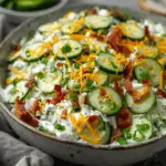 This Fresh Summer Cucumber Ranch Salad is a cool, creamy side dish made with diced cucumbers, cherry tomatoes, red onion, cheddar cheese, and crispy turkey bacon tossed in a homemade ranch dressing. Perfect for BBQs, weeknight meals, or sunny lunches, it’s a refreshing, easy-to-make salad with bold flavors and satisfying crunch.