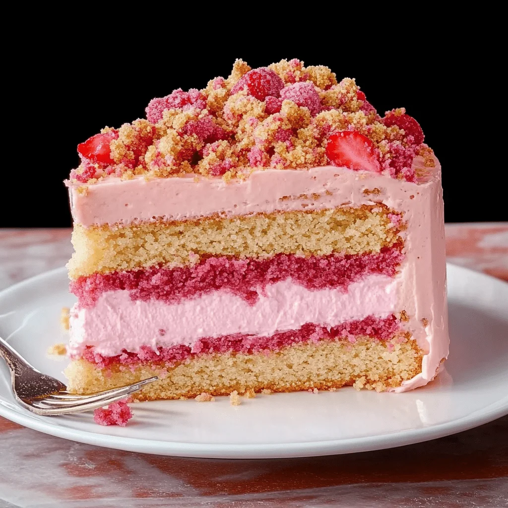 The strawberry cake base brings a bright, fruity flavor and soft texture. Often made using a boxed cake mix enhanced with strawberry gelatin, the result is a moist and flavorful foundation. The gelatin amplifies both color and flavor, creating the perfect complement to the creamy cheesecake center.