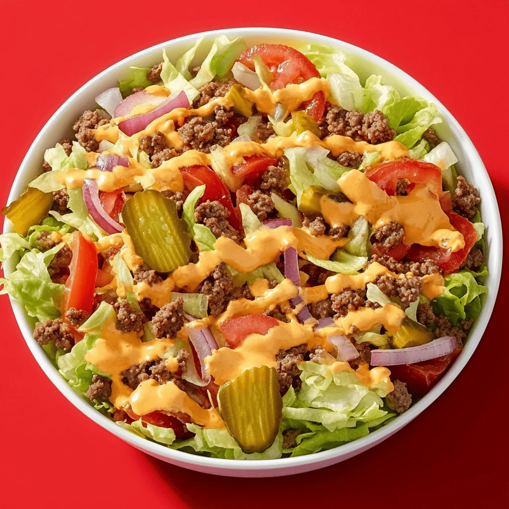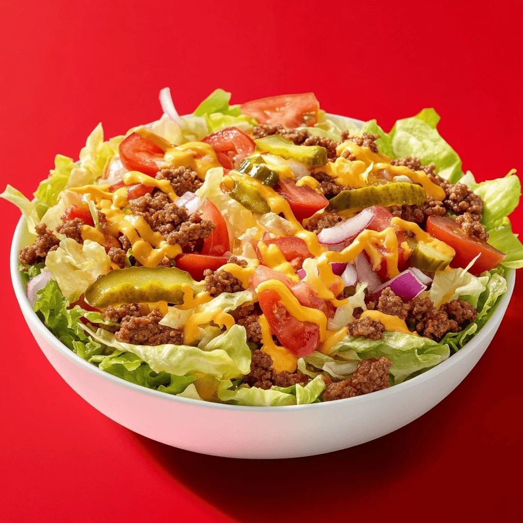 In a world where fast food meets health goals, the Big Mac Salad has found its sweet spot. It’s a flavorful mashup that delivers everything people love about the iconic burger—minus the bun. This bowl of goodness transforms a guilty pleasure into a guilt-free meal by blending fresh greens, savory ground meat, and a creamy tangy dressing that pulls it all together. It’s low-carb, high-protein, and undeniably satisfying.