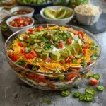 There’s something irresistibly satisfying about a seven layer taco dip. It’s the kind of crowd-pleasing appetizer that always disappears first at parties, potlucks, and family game nights. This classic Mexican-inspired dip delivers a perfect balance of creamy, spicy, and fresh flavors layered into one convenient dish. Best of all, it’s incredibly simple to make, requiring no cooking—just thoughtful layering and a bit of prep time.