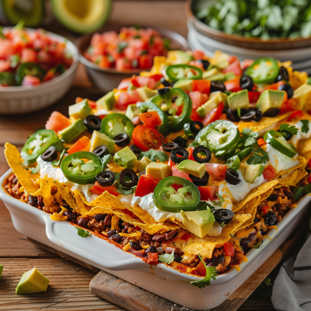Fresh, creamy, and slightly tangy, guacamole adds richness and freshness. You can use store-bought guacamole in a pinch, but homemade versions with lime juice, garlic, and cilantro elevate the flavor significantly. This layer also adds a beautiful green contrast to the dish.