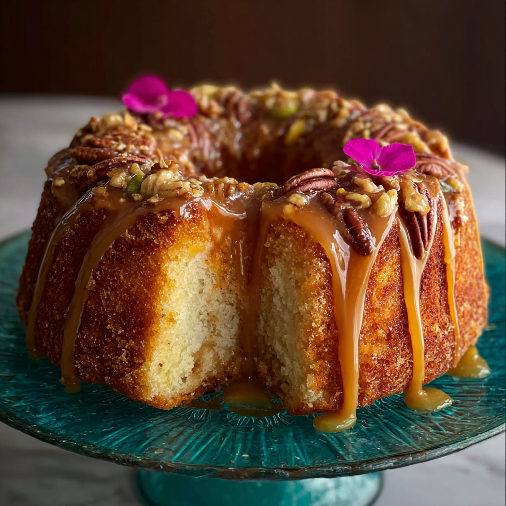 What makes this cake truly unique is its layered construction and rich ingredients. The Bundt pan allows the caramelized pineapple to become a golden, sticky topping once the cake is flipped, while the center is filled with sweetened condensed milk or banana pudding that soaks into the crumb. Topped with chopped pecans or coconut and a velvety cream cheese glaze (like those seen in cream cheese glaze desserts), it creates an indulgent yet balanced dessert with multiple textures. For those new to this Southern classic, exploring the cake’s roots in Southern United States cuisine offers a deeper appreciation of its nostalgic flavors and modern twist.