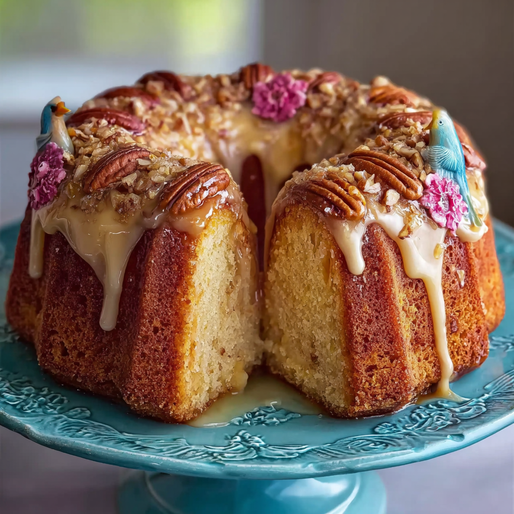 Optional garnishes include extra pecans, toasted coconut, or crushed dried pineapple. Each component plays a role in adding texture and flavor, and substitutions are possible for dietary needs. You can explore more Bundt-style ideas in the poke Bundt cake recipes and Southern cake recipes collections.