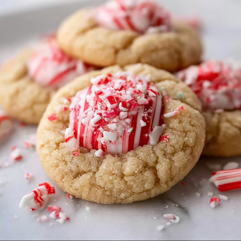 These Candy Cane Kiss Cookies are a festive holiday favorite featuring a soft vanilla cookie base, sparkling sugar coating, and a peppermint swirl Hershey’s Kiss pressed on top. With their red-and-white color scheme and cool mint flavor, they’re perfect for Christmas cookie trays, parties, and homemade gifts.