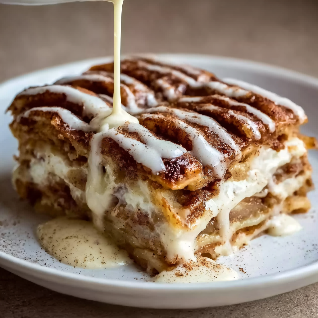 Cinnamon Roll Apple Lasagna is a cozy, layered dessert that combines tender cinnamon rolls, spiced apple pie filling, and creamy cheesecake layers. Baked into a golden, bubbling lasagna-style dish and topped with icing or caramel, it’s the ultimate indulgent treat for fall gatherings, brunches, or holidays.