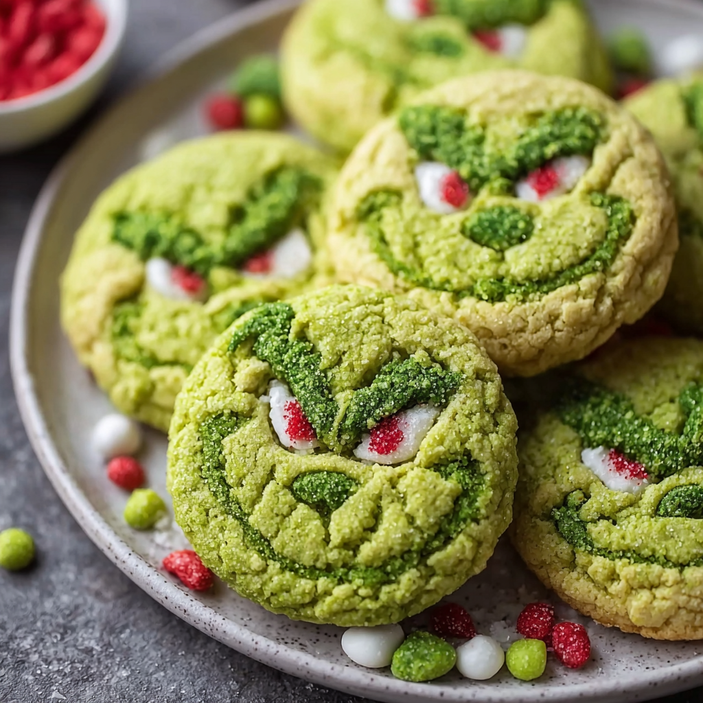 Grinch cookies are a fun, festive, and colorful treat inspired by the beloved holiday character from Dr. Seuss’ “How the Grinch Stole Christmas.” These soft, chewy, green cookies are typically made with simple ingredients and topped with a red heart sprinkle—a nod to the Grinch’s heart “growing three sizes.” Perfect for cookie exchanges, classroom parties, or a family movie night, Grinch cookies are a must-bake for the Christmas season.