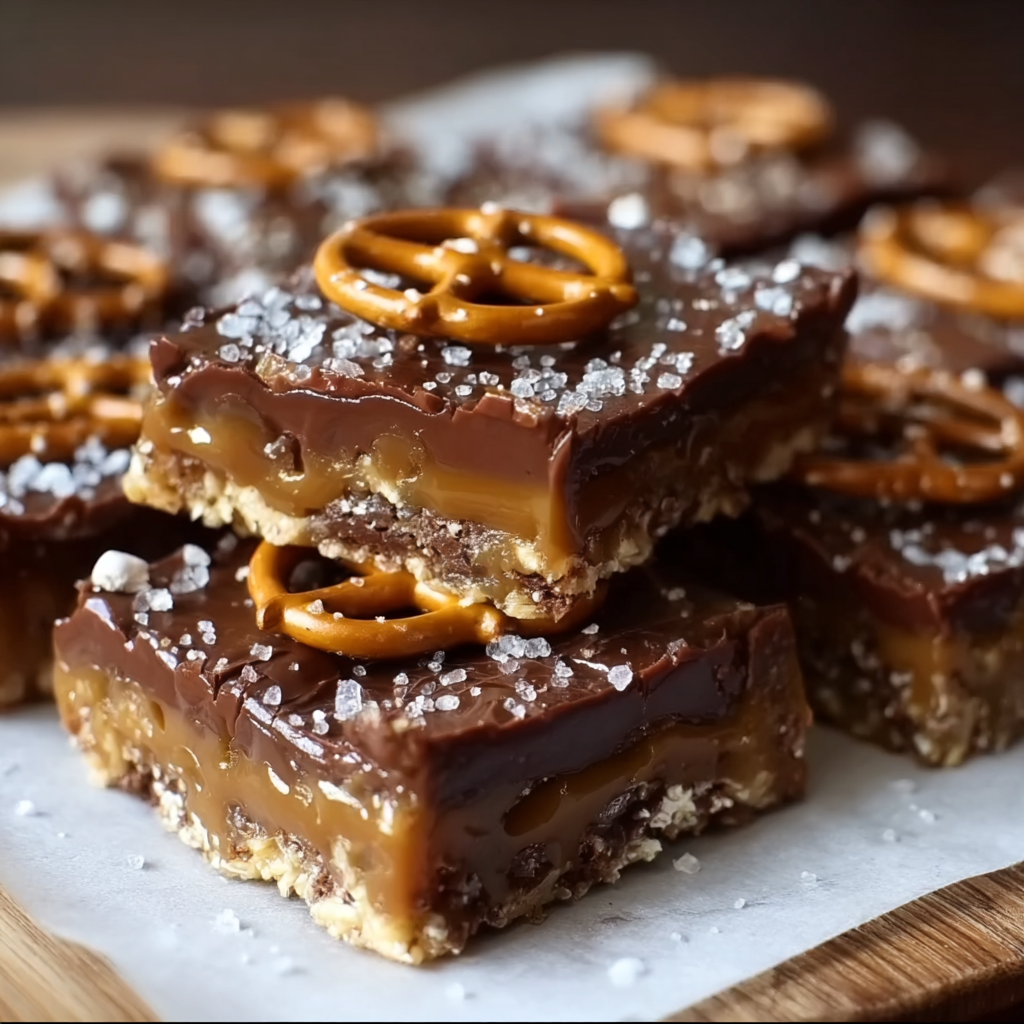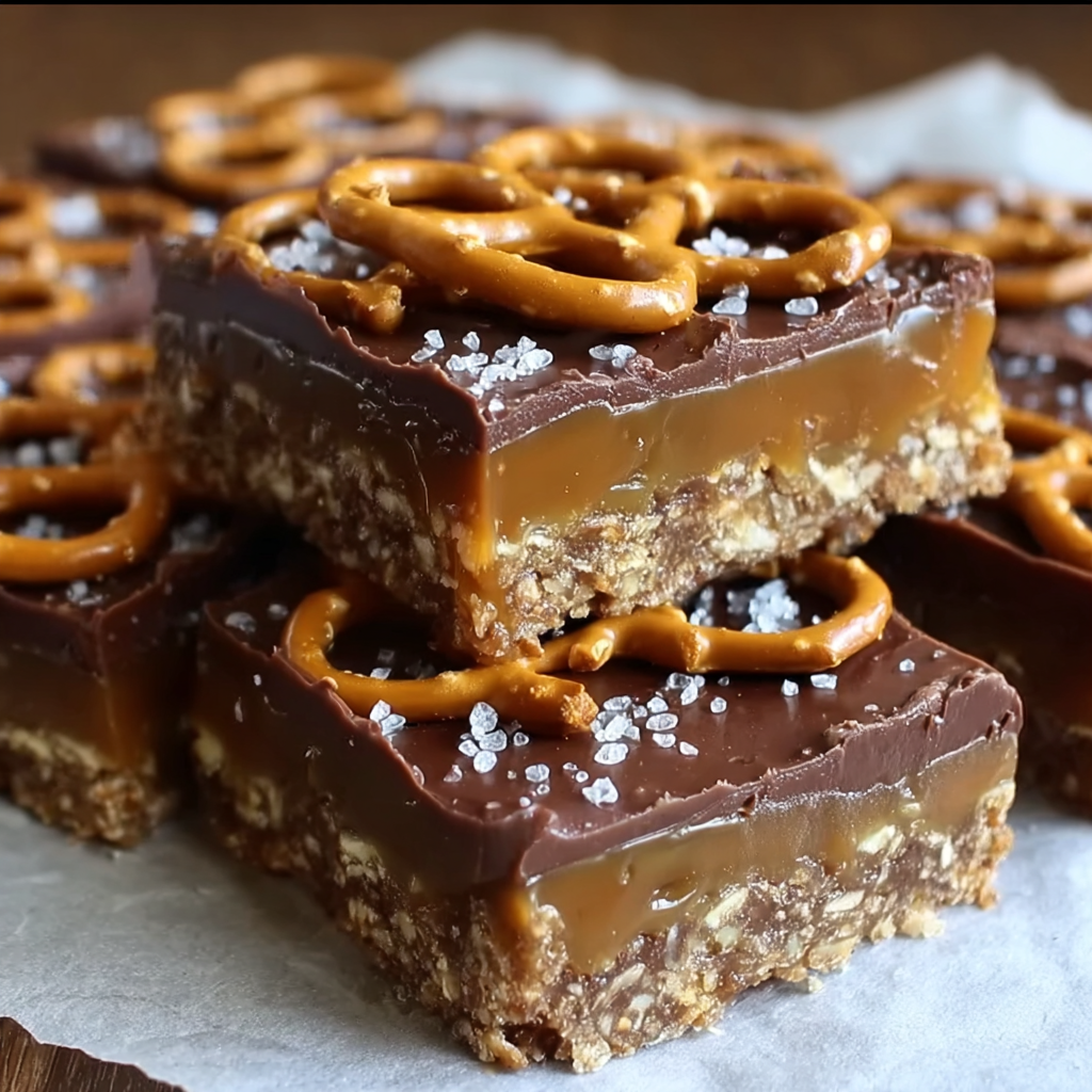 These No-Bake Salted Caramel Pretzel Bars feature a crunchy pretzel base, a smooth caramel layer, and a rich chocolate topping with a sprinkle of sea salt. Ready in under 30 minutes, this no-bake dessert is the perfect sweet and salty bite for any occasion.