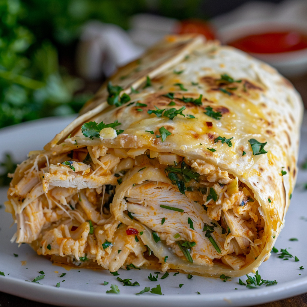 The combination of sautéed garlic, melty cheese, and well-seasoned chicken gives the filling a creamy, savory quality that sets it apart from other burrito fillings. For a richer texture, stir in a spoonful of sour cream or Greek yogurt, which adds tang and creaminess without overpowering the garlic. Finally, chopped parsley gives the mix a fresh, herby finish.
