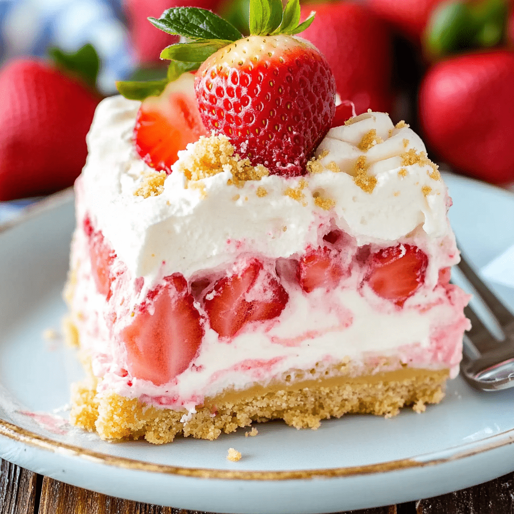 This Strawberry Delight is a creamy, fruity, no-bake layered dessert perfect for summer. With a buttery cookie crust, light cream cheese filling, and fresh strawberries layered throughout, it’s an easy and impressive treat for gatherings, holidays, or just a sweet weekday indulgence.