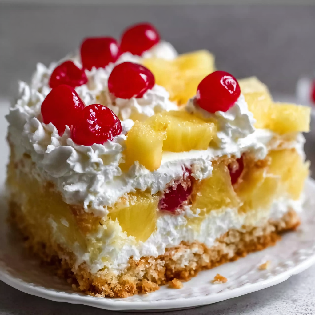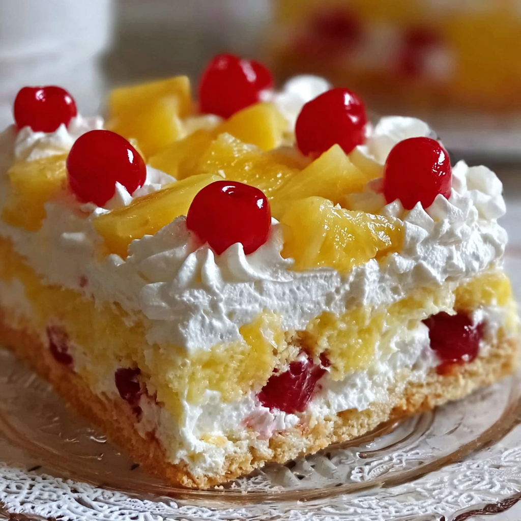 A soft and refreshing dessert with layers of tender cake, sweet pineapple filling, and a fluffy cream topping. This chilled treat is easy to make, perfect for gatherings, and always a crowd-pleaser.