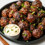 These Korean BBQ Meatballs are infused with bold, tangy flavors from soy sauce, ginger, garlic, and sesame oil, then baked to perfection for a juicy bite. Paired with a creamy Spicy Mayo Dip, this dish combines heat, sweetness, and savory goodness in every bite. They’re perfect for any gathering, game day, or a special treat!