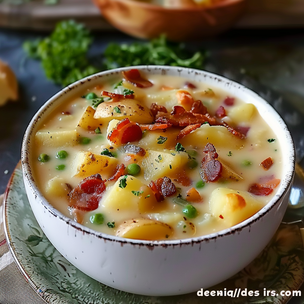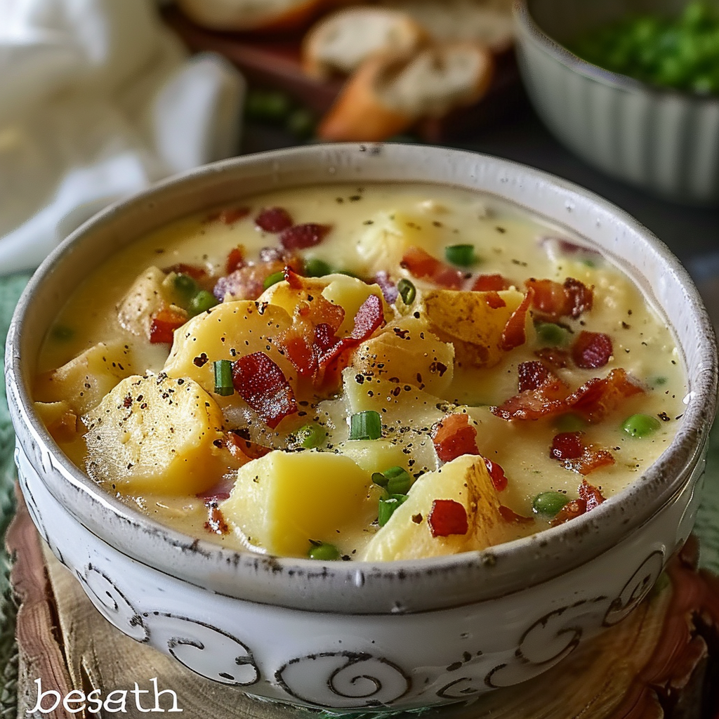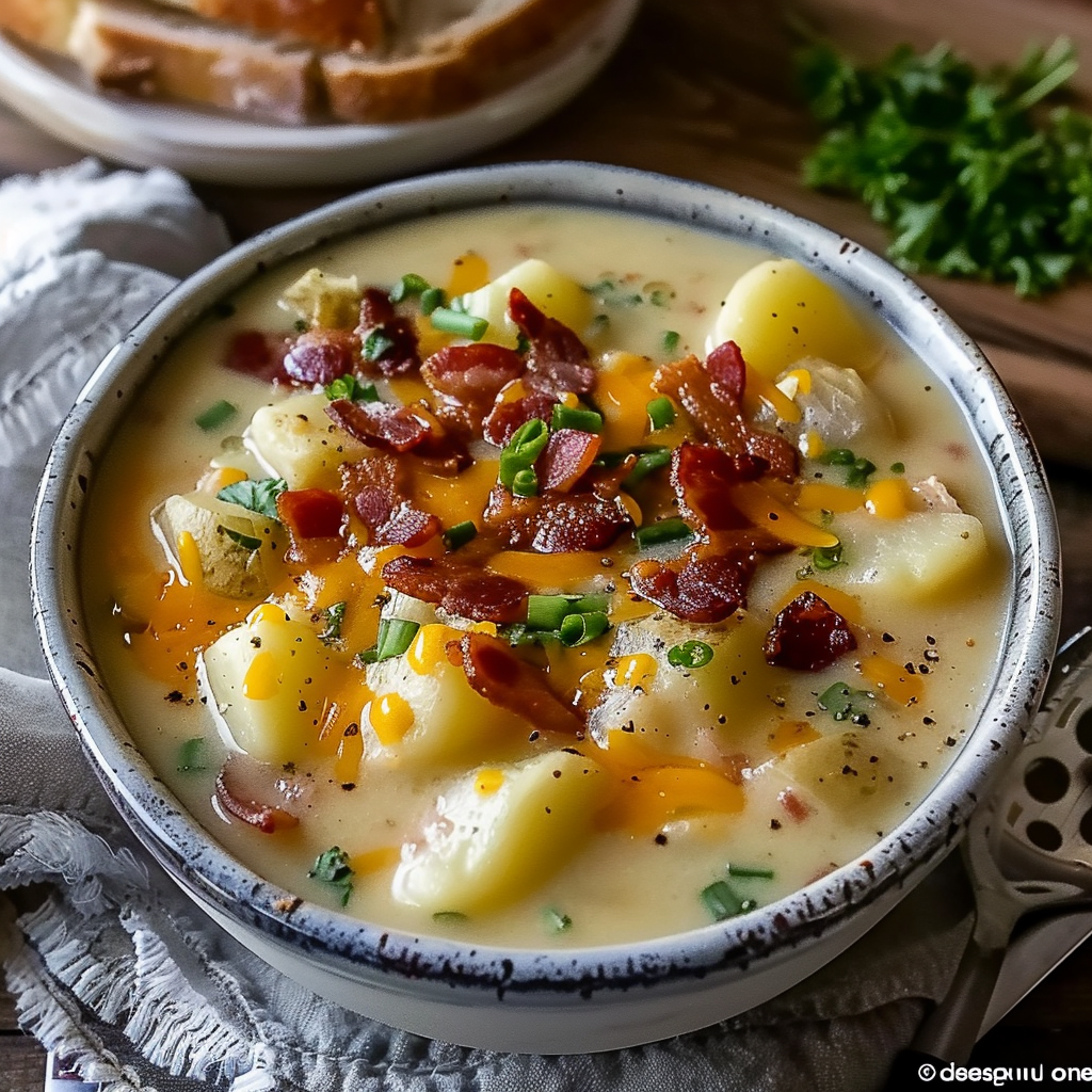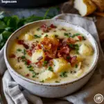 This loaded potato soup is a rich, creamy, and comforting dish made with tender russet potatoes, crispy turkey bacon, melted cheddar cheese, and a flavorful broth. Perfect for chilly nights or cozy meals, it’s easy to customize and always a crowd-pleaser with endless topping options.