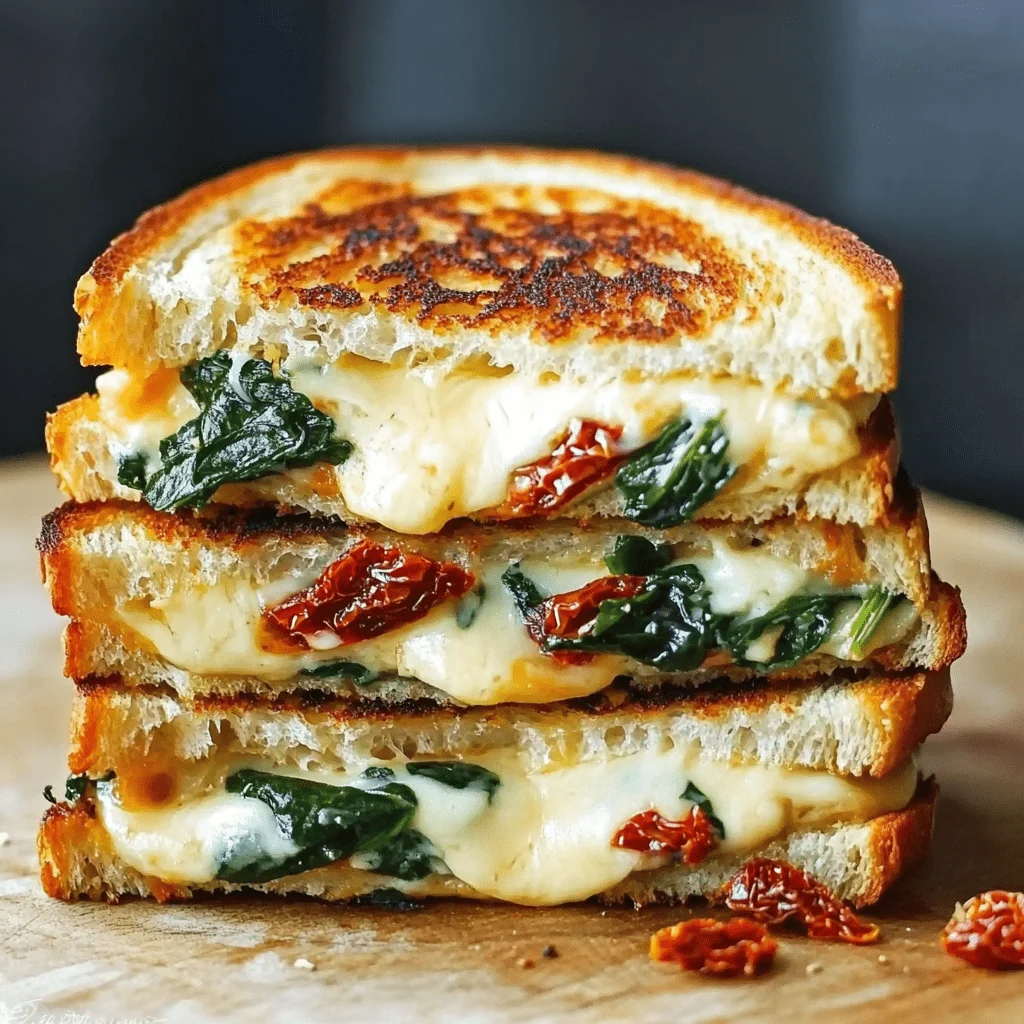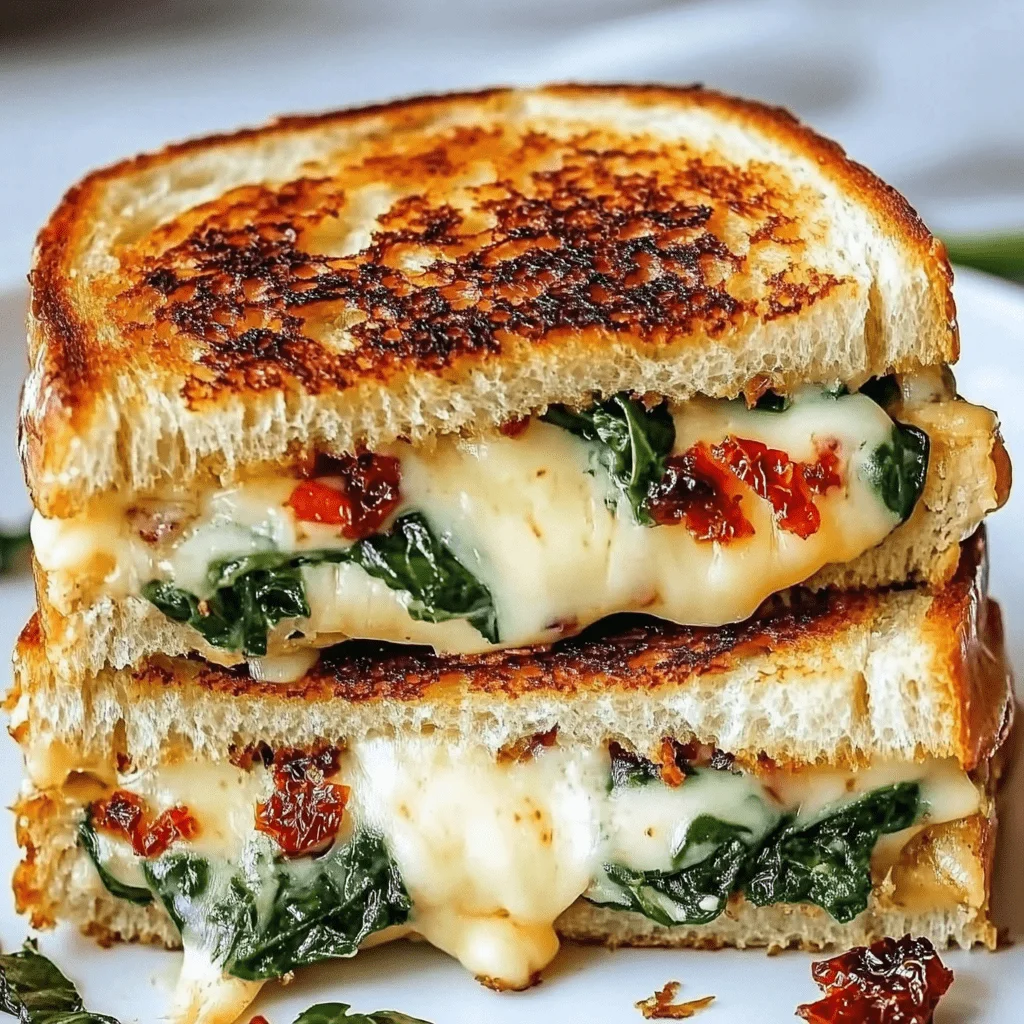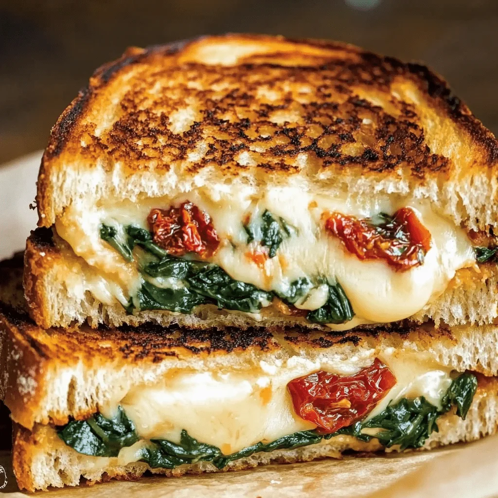 Each ingredient plays a distinct role. The cheeses deliver both creaminess and saltiness, while spinach and sun-dried tomatoes offer contrast in both texture and flavor. The result? A beautifully balanced, Mediterranean-inspired sandwich that tastes as good as it looks.