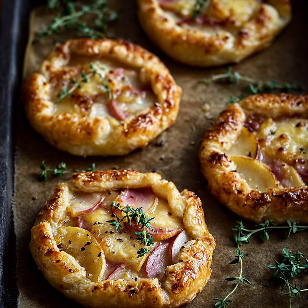 Mini Apple Galette with Ham and Gruyere a rustic savory sweet puff pastry tart