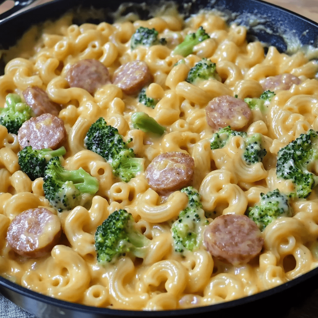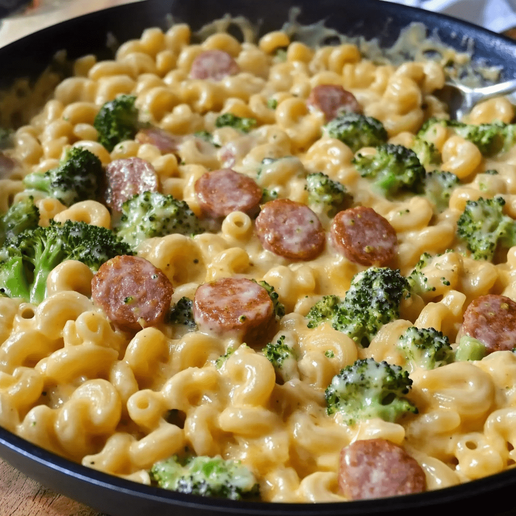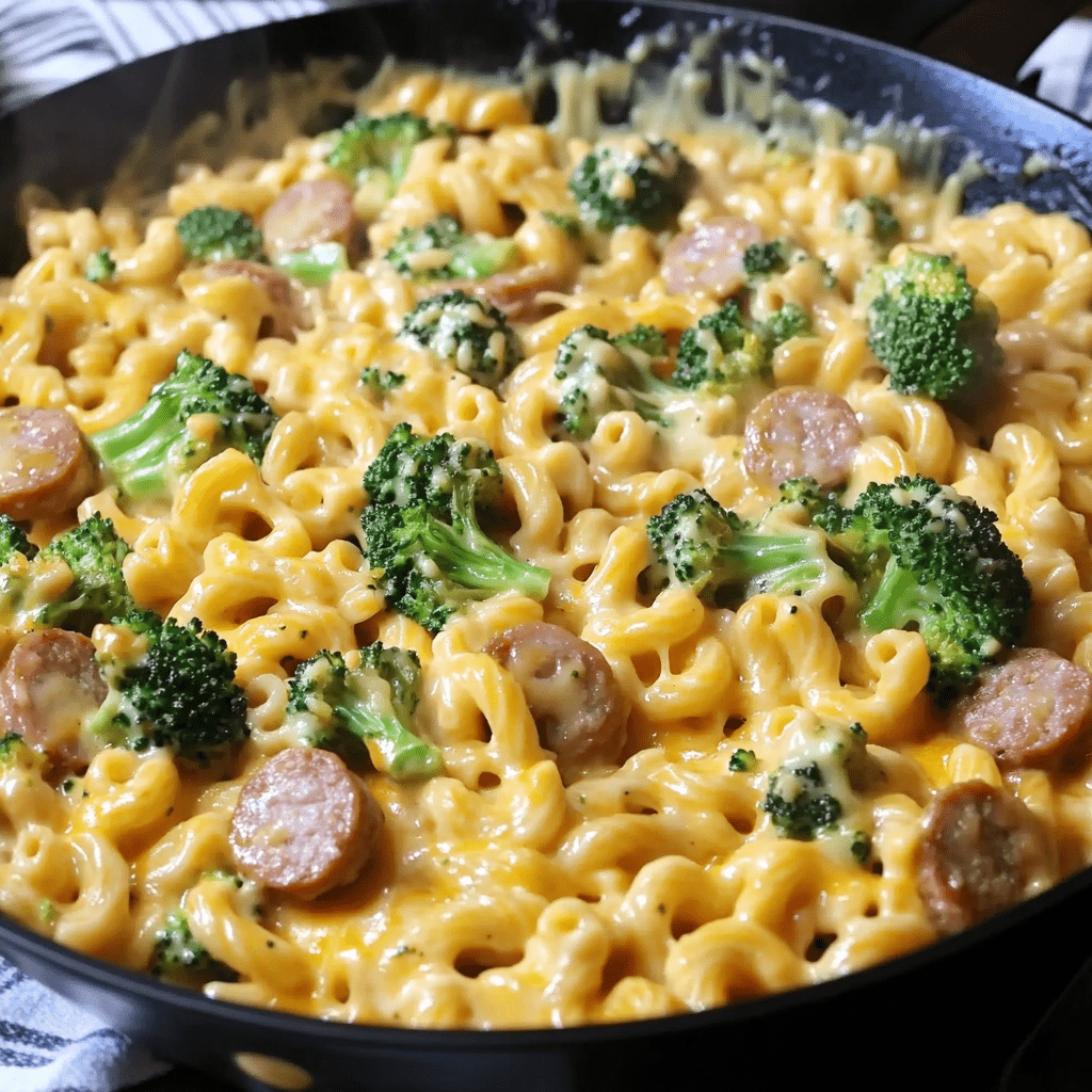 This easy one-skillet dinner combines smoky sausage, creamy cheddar sauce, and tender broccoli with flavorful pasta for a budget-friendly meal under $10. It’s quick to prepare and perfect for busy weeknights—ready in just 30 minutes and loved by kids and adults alike.