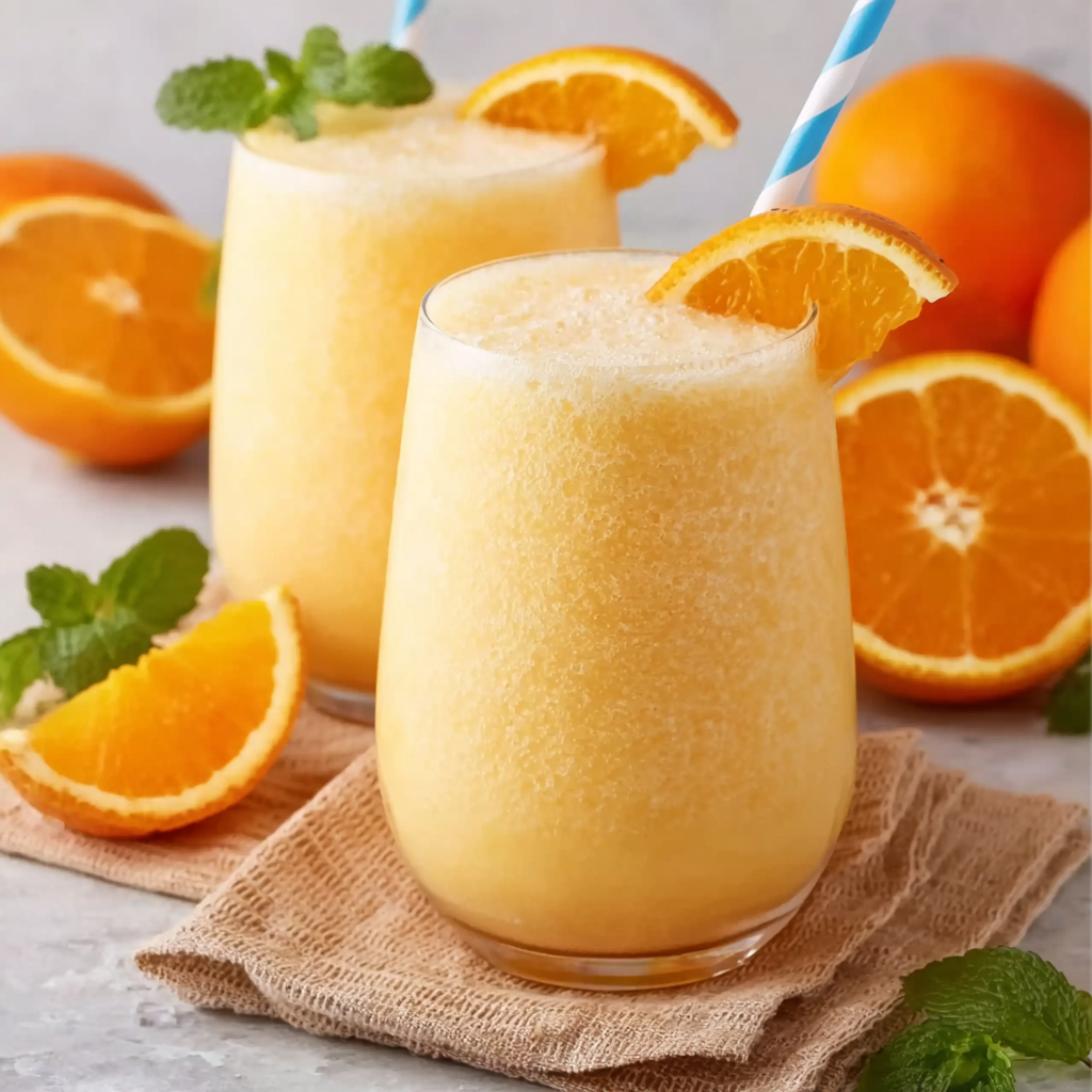 A refreshing and creamy citrus beverage made with orange juice, milk, and ice. This homemade version recreates the famous frothy drink that is both sweet and refreshing.